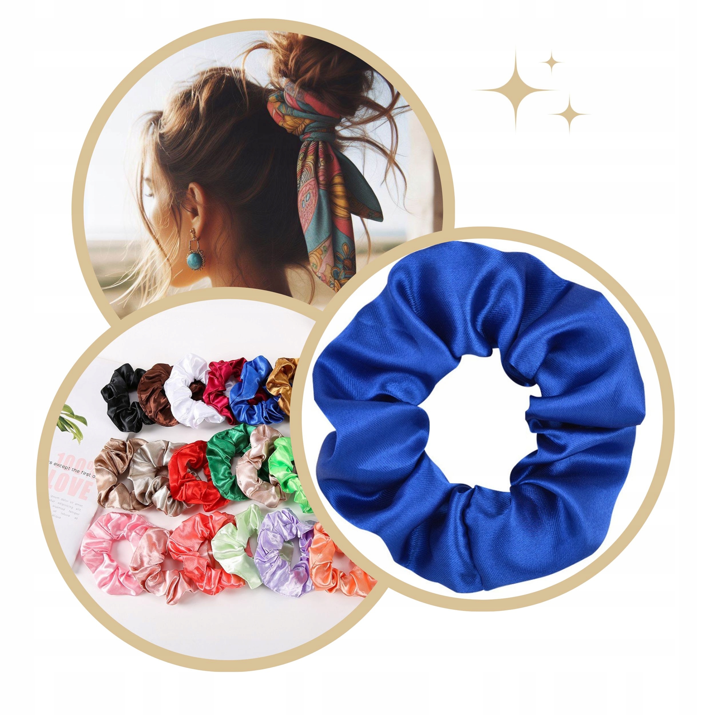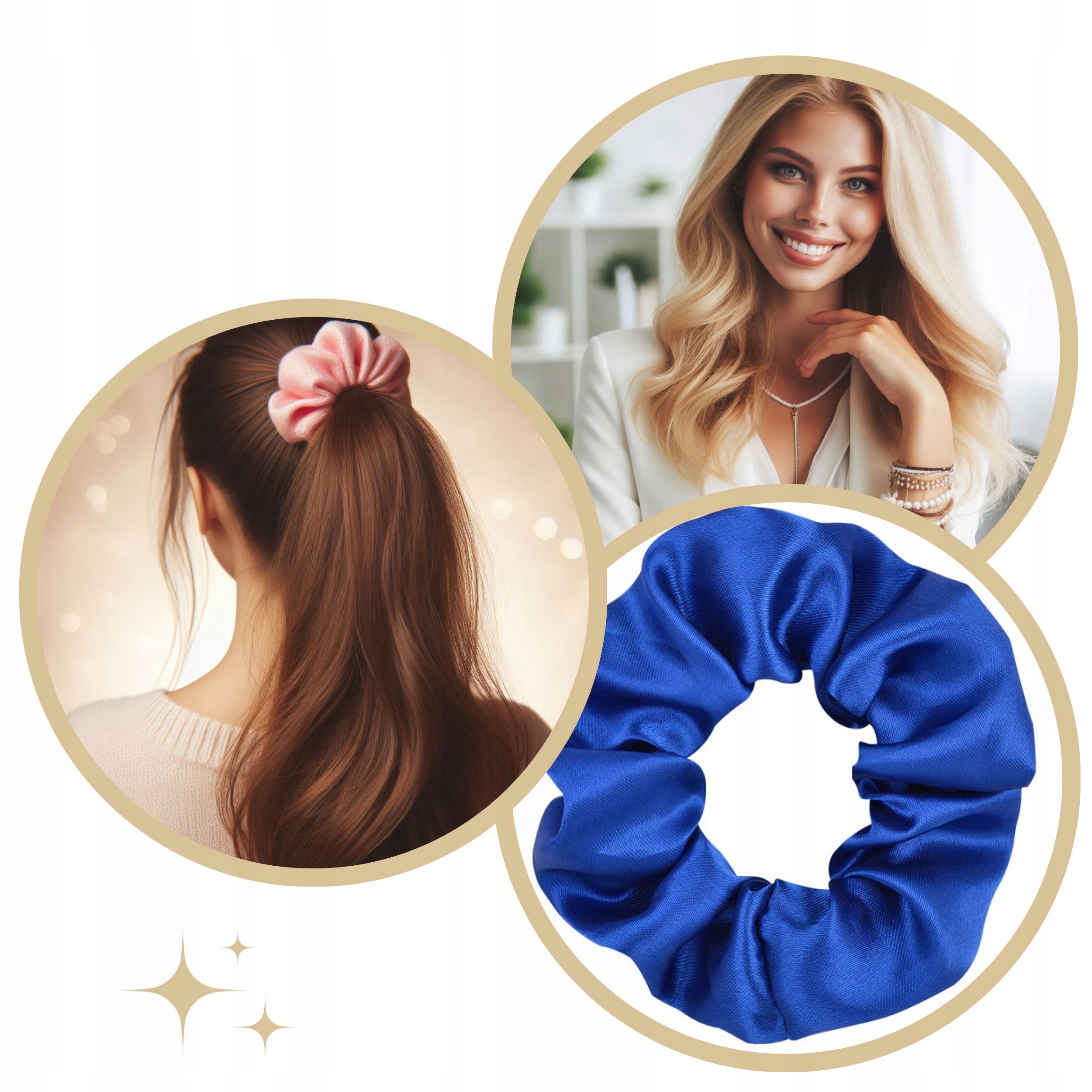 Gumka do włosów SATYNOWA scrunchie niebieska BEZPIECZNA z połyskiem WYGODNA