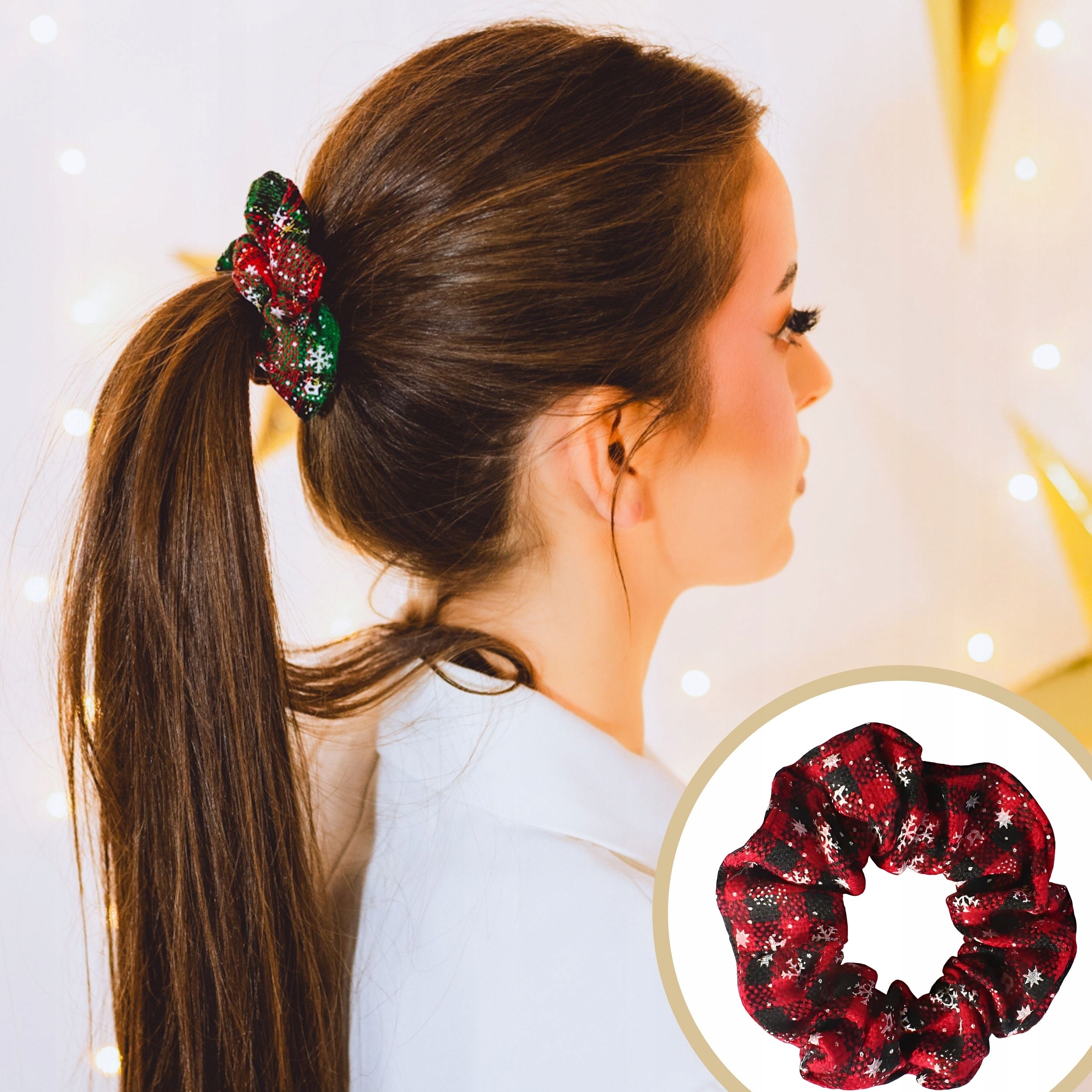 Gumka do włosów ŚWIĄTECZNA w kratę czerwona NA ŚWIĘTA frotka mikołaj MODNA