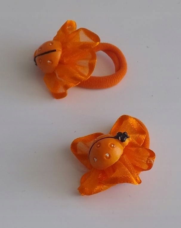 Мягкие и приятные на ощупь резиночки для девочек с милыми божьими коровками. Резинки и украшения оранжевые. Резинки очень мягкие и легко снимаются с волос, не вырывая их