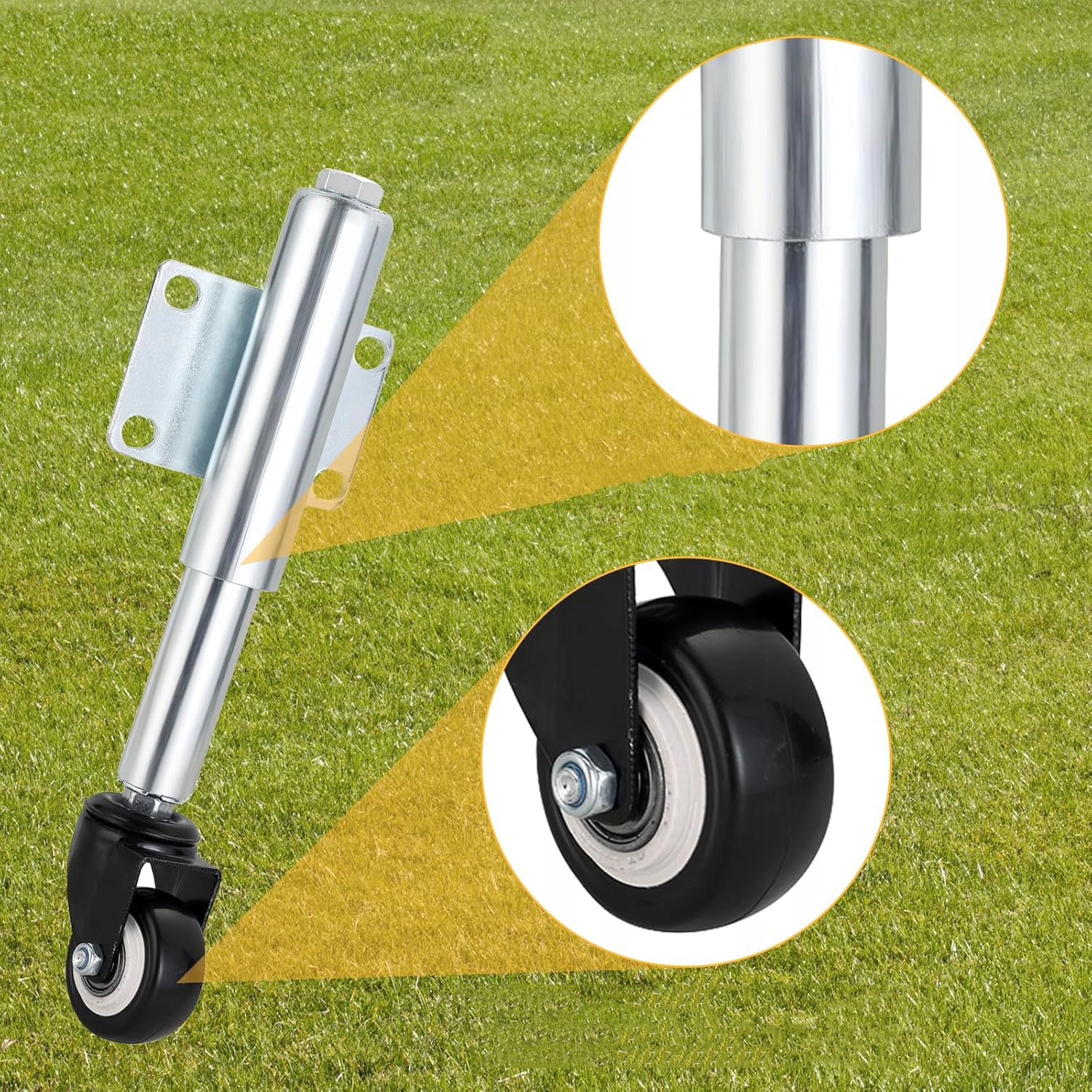 ➡️ Амортизация ударов: Ворота можно свободно открывать и закрывать благодаря пружинной системе. Благодаря пружине роликовое колесо может обеспечить плавное перекатывание по неровной поверхности для экономии энергии при толкании.