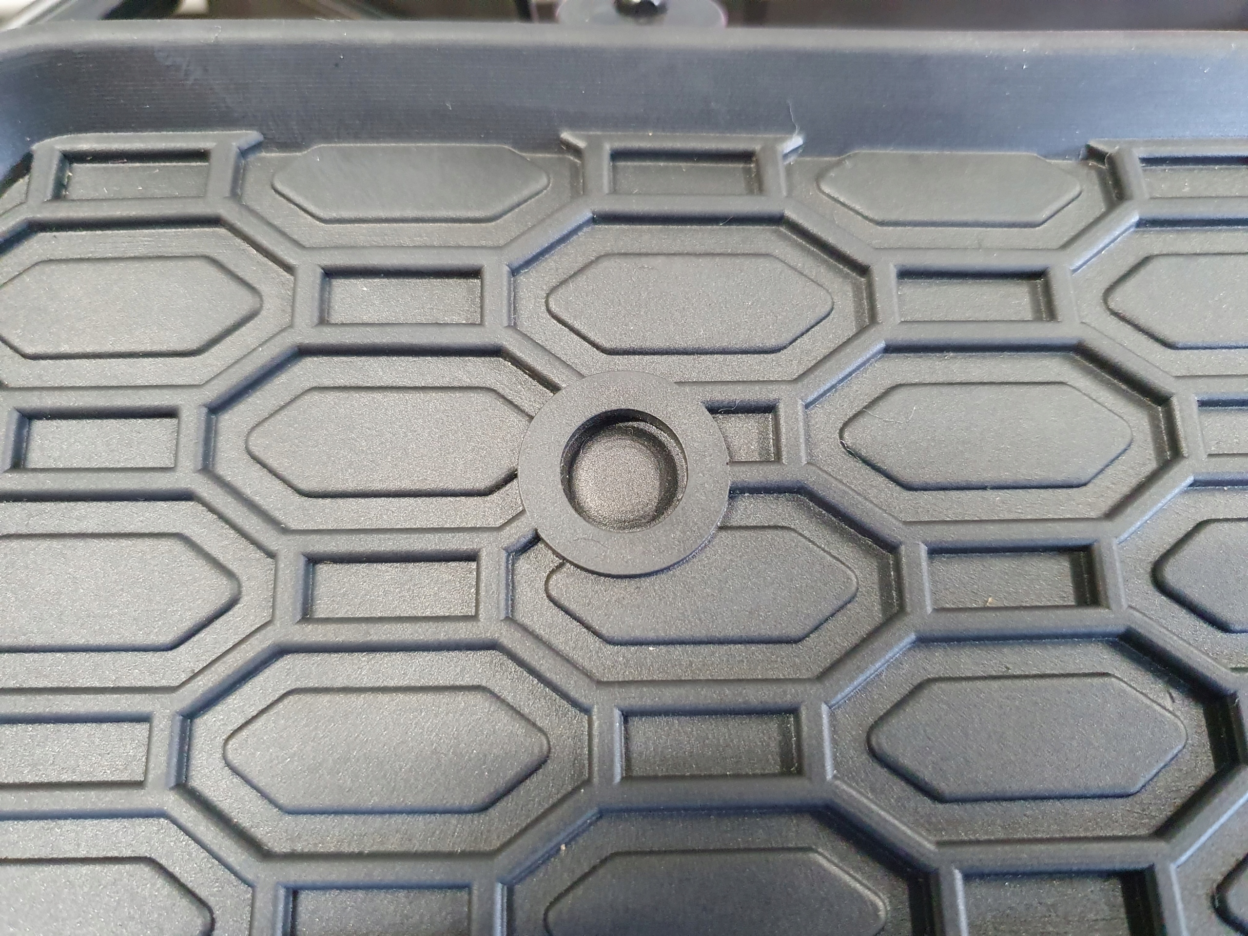 В ПЕРЕДНИХ КОВРИКАХ ПОДГОТОВЛЕНО МЕСТО ДЛЯ ВЫСТУПАЮЩИХ ИЗ ПОЛА КРЮЧКОВ