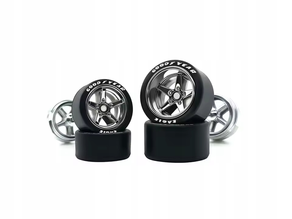 НАБОР КОЛЕС ДЛЯ МОДЕЛЕЙ, ПРЕДОСТАВЛЯЮЩИХСЯ С ДВУМЯ РАЗМЕРАМИ КОЛЕС: МАЛЕНЬКИМ Спереди и БОЛЬШИМ СЗАДИ. ПРИМЕР МОДЕЛИ НА ФОТО: