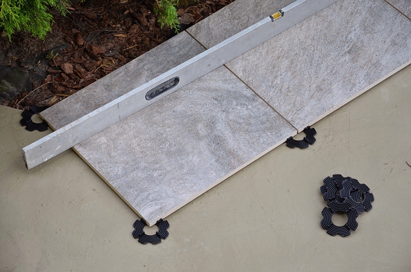 Благодаря постоянному натяжению соответствующего диаметра и высоты подкладки гарантируют равномерное расположение плит по всей поверхности террасы