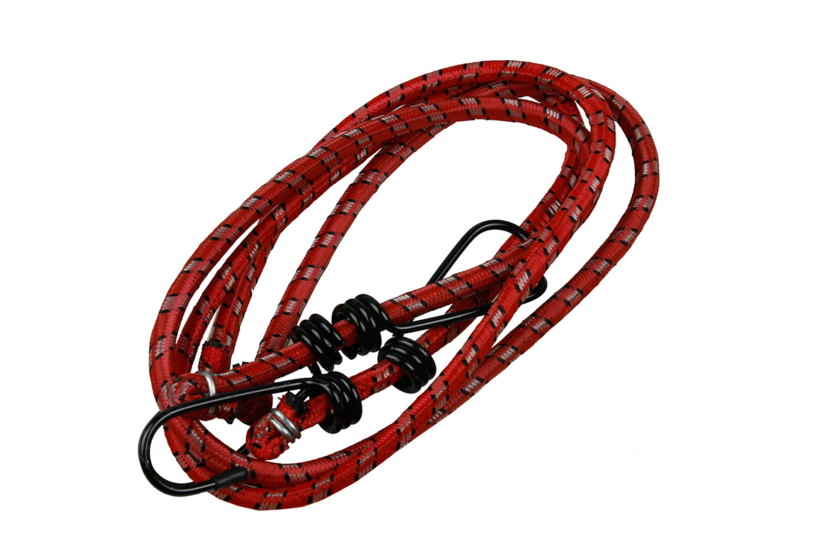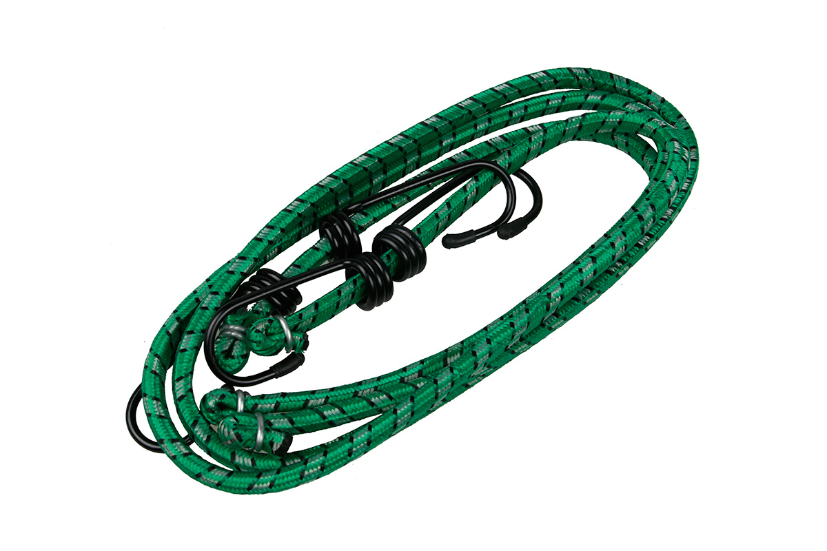 В комплект входят три резинки зеленого, желтого и красного цвета Длина 80 см, диаметр веревки 0,6 см, отделана стальными крючками.