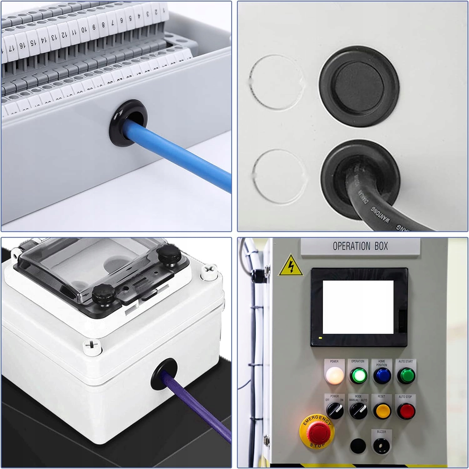 Черные кабельные втулки изготовлены из высококачественной резины, что обеспечивает долговечность и устойчивость к погодным условиям. Комплект прокладок изготовлен из высококачественной резины и может использоваться при температуре от -30 до 110°С. Он прочный, устойчивый к разрыву и долговечный.