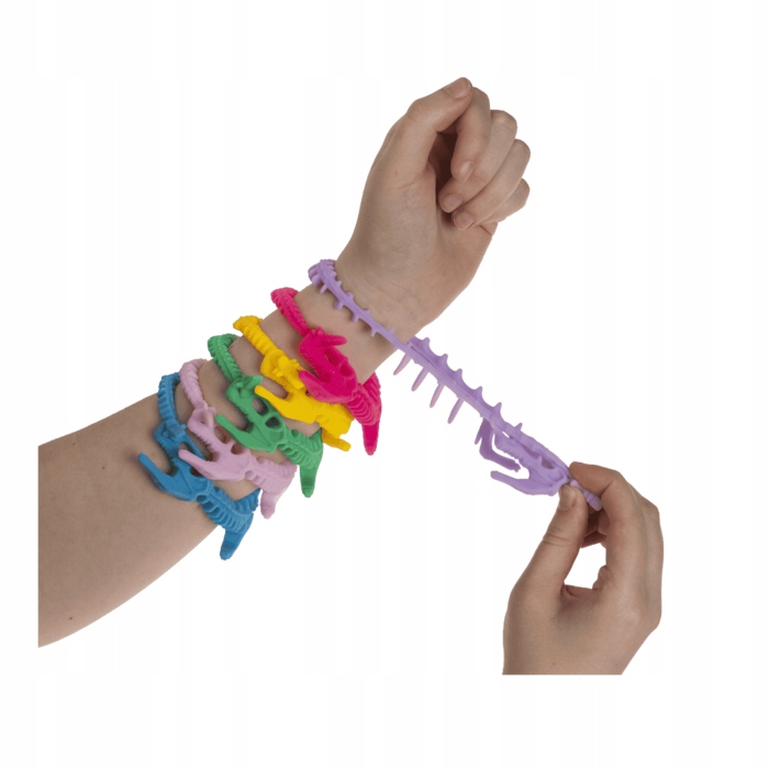 Это не обычный браслет — это маленькая безумная забава, которая сразу выделяет своего владельца! Изготовленный из мягкой эластичной резины, он представляет собой скелет симпатичного животного в стиле комиксов. Он выглядит одновременно весело и легко, что делает его идеальным аксессуаром для тех, кто любит моду с долей скептицизма.