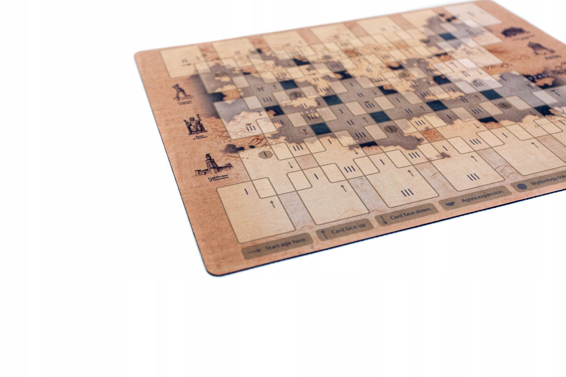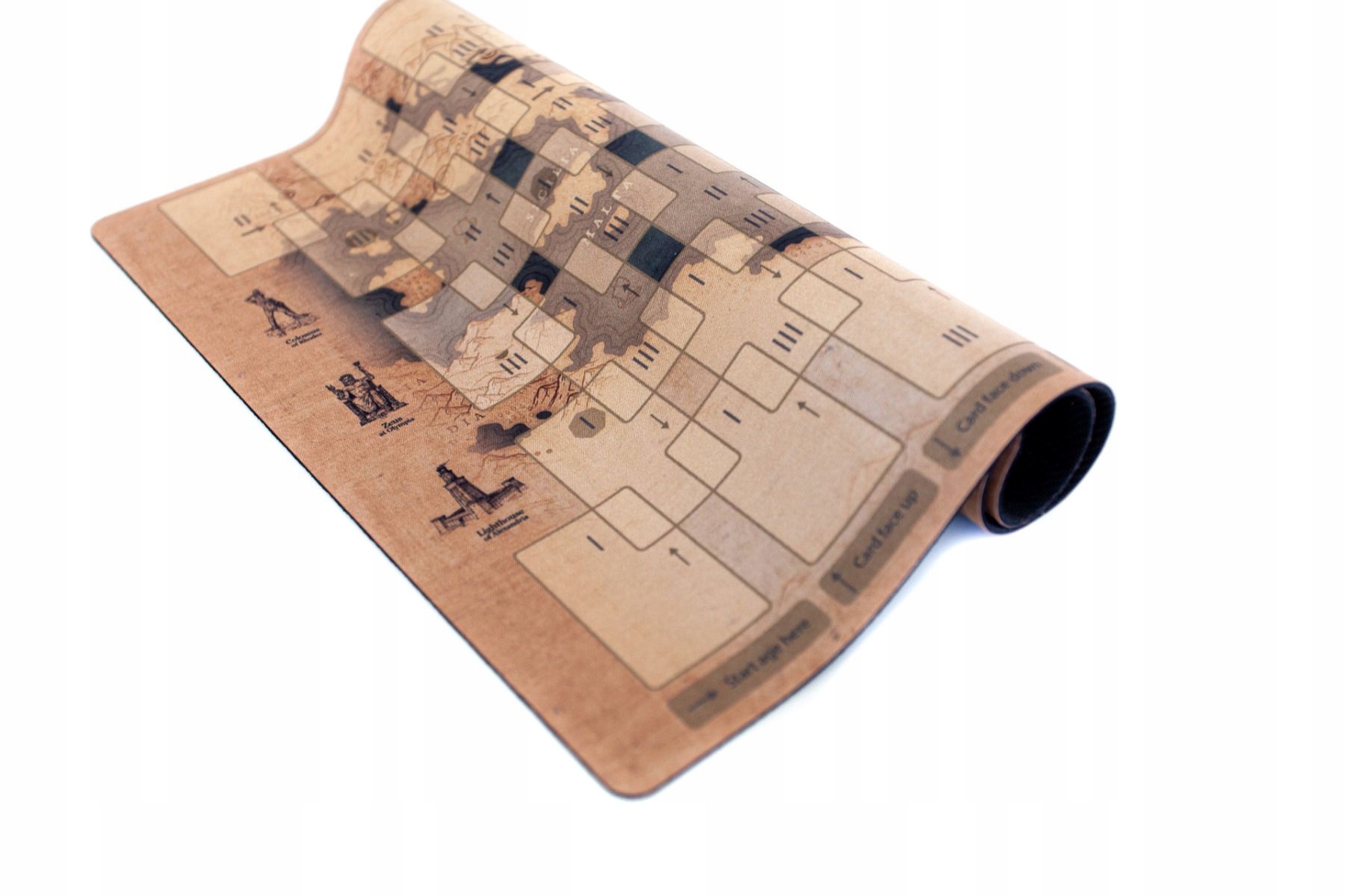 Анти -слабый, резиновый коврик, посвященный чудесам мира 7 - дуэль. Мат представляет карту мира. На коврике есть назначенные игровые поля. Эта визуальная настройка позволяет вам лучше сопереживать, что значительно увеличивает игровой опыт. В дополнение к повышенным эстетическим ценностям игры, MAT дополнительно защищает элементы от разрушения и смещения. Неофициальный продукт, совместимый с игрой 7 чудес света.