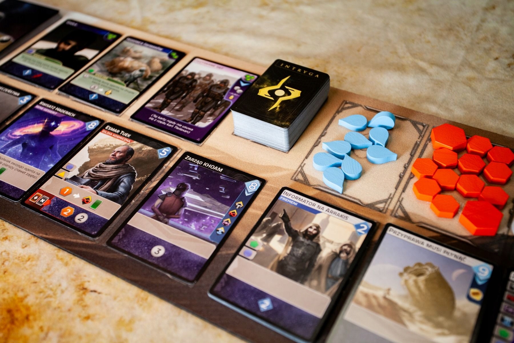 Противоскользящий резиновый коврик, посвященный игре Dune Imperium. На коврике обозначены игровые поля. Визуальная составляющая позволяет лучше прочувствовать игру, что существенно увеличивает впечатления от игрового процесса. Помимо повышенной эстетической ценности игры, коврик дополнительно защищает элементы от повреждений и смещения. Неофициальный продукт, совместимый с игрой Dune Imperium.