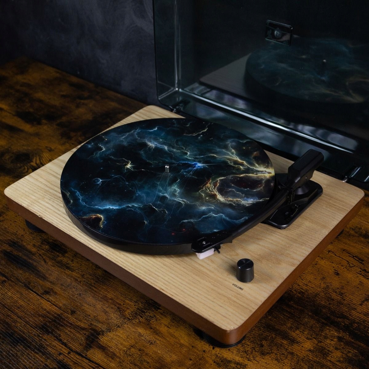 Скользящий коврик для проигрывателя «Небула» — это сочетание функциональности и космического стиля. Изготовлен из прочного прорезиненного материала толщиной 2 мм, предотвращает вибрацию и защищает диск от царапин. Узор, изображающий голубую туманность, придаст вашему проигрывателю необыкновенную атмосферу и при этом обеспечит лучшее качество прослушивания.