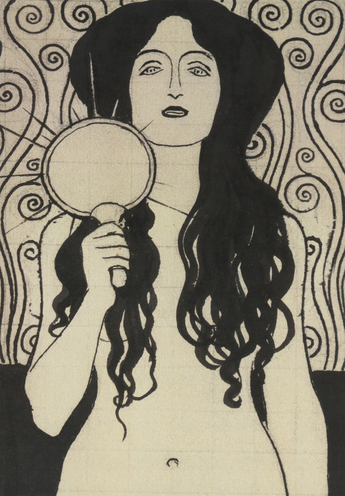 Графика, изображающая фигуру молодой женщины с зеркалом в руке.