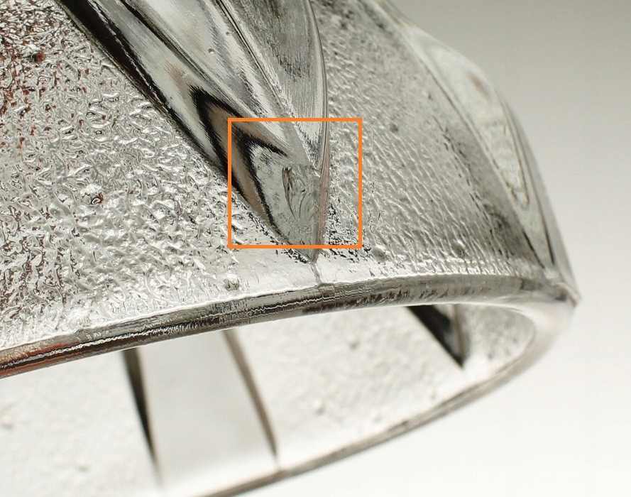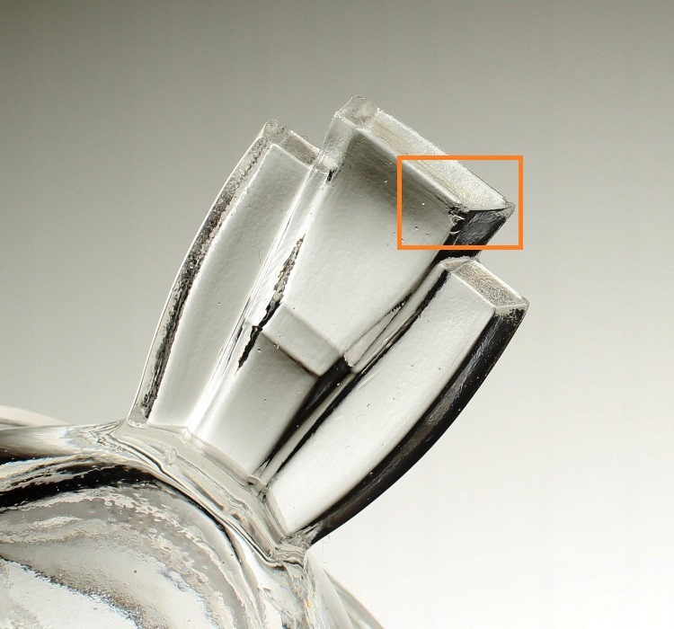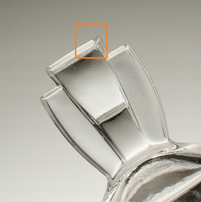 На углу одной из деталей вершины микроповрежденность около 1 мм, а на одной из деталей чаши имеется плоский чип около 4 мм. Несколько мелких дефектов на чаше.