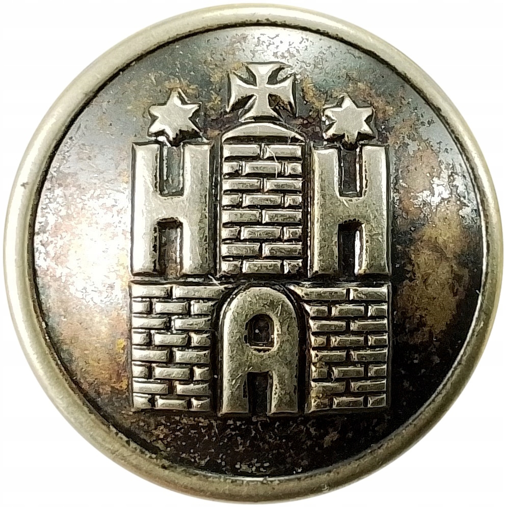 Пуговица от униформы сотрудника HHA, двухслойная, стальная реверс, подписанная наименованием производителя и монограммой, полностью посеребренная.