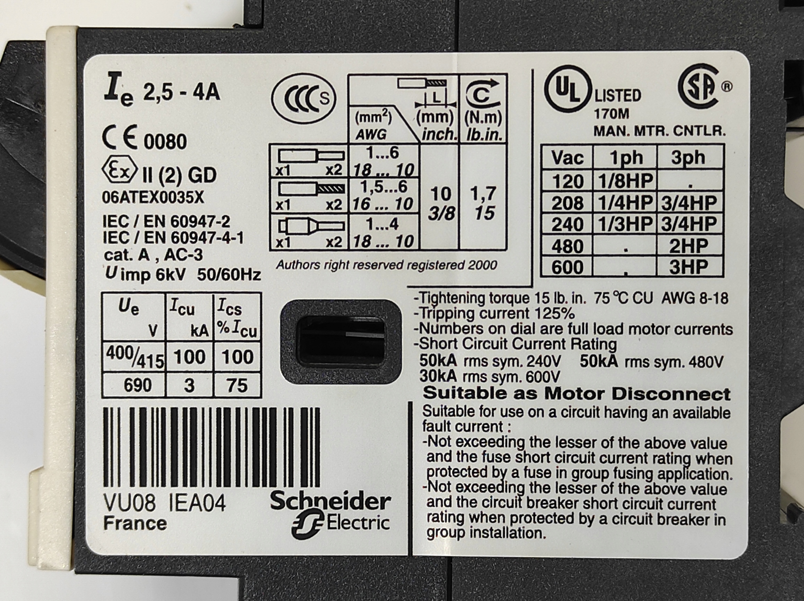 GV2ME08 Telemecanique Switch защитный переключатель двигатель 2.5-4A