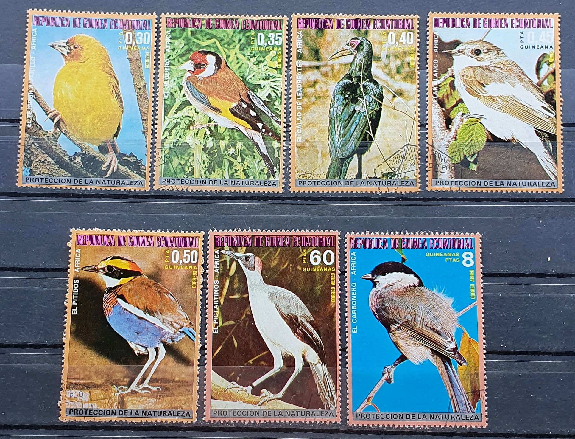 ГВІНЕЯ ЕКВАТОРІАЛЬНА ТЕМА ПТАХИ ** 1976 MI 989-995 ВИПАДКОВІ МАРКИ