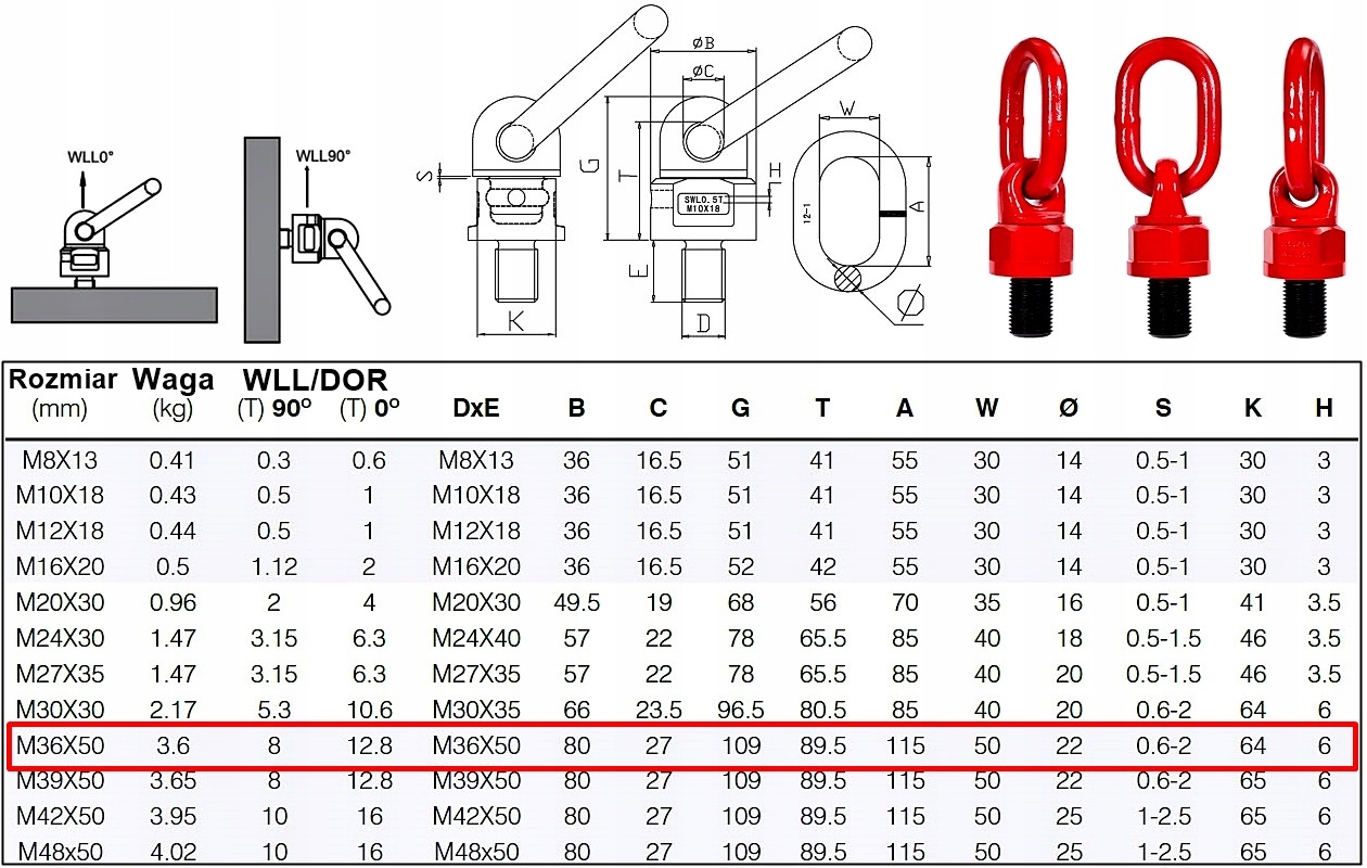 Точка крепления, поворотно-наклонный винт M36 x 6,0, класс G80 DOR: 8,0 т/ 8000 кг — одобрение CE