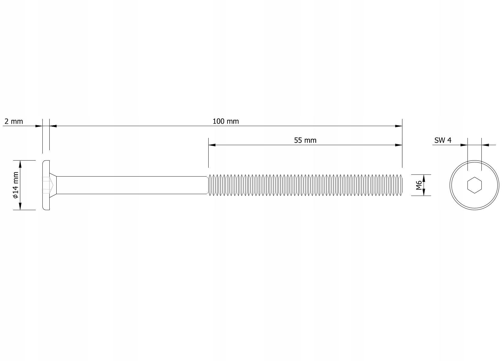 РАЗМЕР: РЕЗЬБА M6, ДЛИНА 100 ММ, ДИАМЕТР ГОЛОВКИ 14 ММ