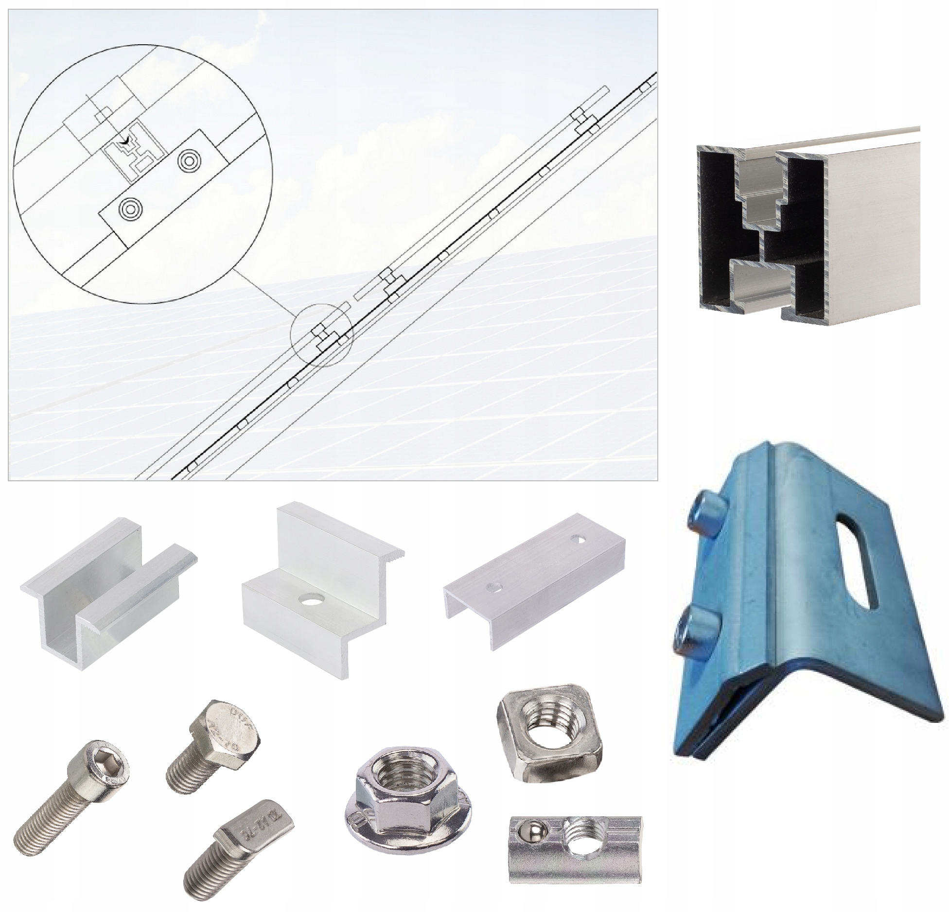 Правильный монтаж фотоэлектрических панелей на крыше требует использования ряда близко подобранных элементов.