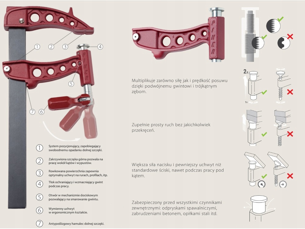 Мощный зажим PIHER до 9000 Н. Предназначен, среди прочего: для столярной, судостроительной и листовой промышленности – везде, где необходимо соединить разные элементы.