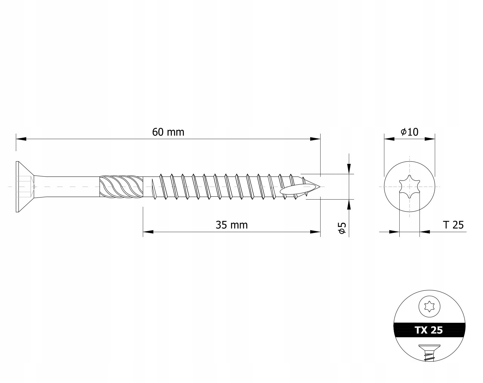 ВИНТ ПО ДЕРЕВО UNIX 5,0 X 60 ММ, TX25