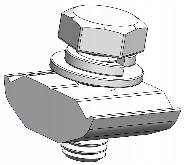 - Прочный винт из горячеоцинкованной стали. Толстый фланец приспособлен для крепления элементов винтами М12.