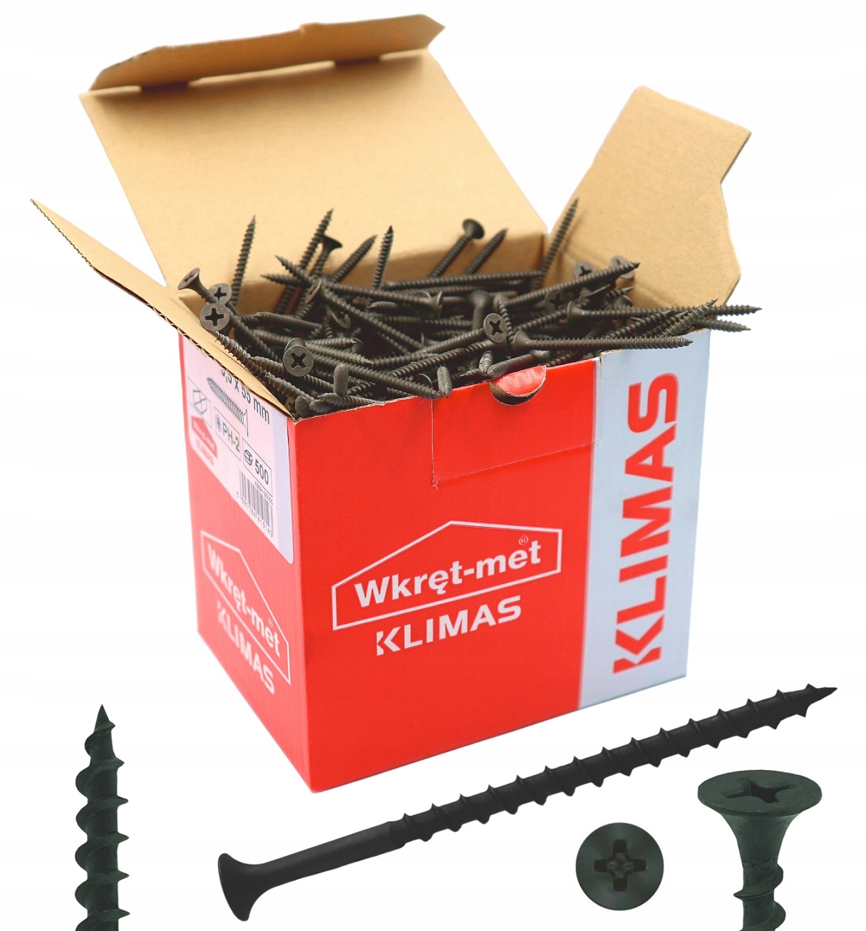 Фосфатированные шурупы от известного производителя - Wkręt-Met, для крепления гипсокартона к деревянным основаниям внутри зданий.