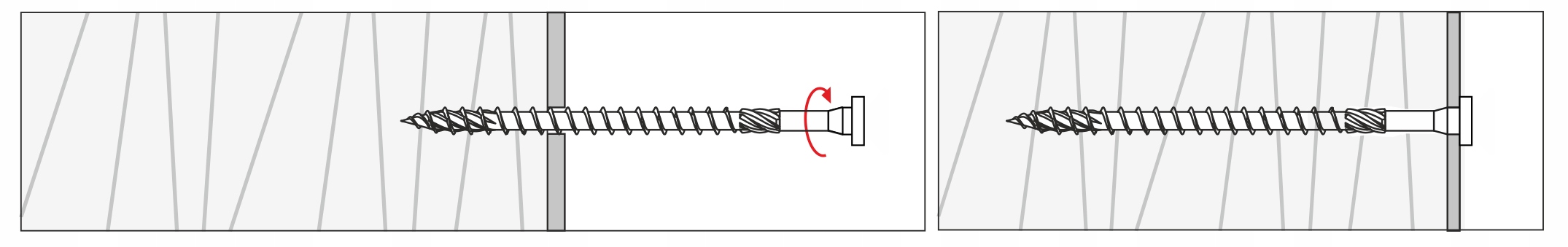 Винты имеют круглую головку интегрированной под отверстиями ⌀ 8 мм , чтобы их можно было использовать для прикрепления трехмерных креплентских крепежных крепеж к деревянным подложкам.