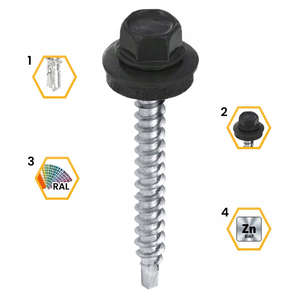 Self-Self-Vint винтово-ход с подушкой EPDM, изготовленной в цинковом покрытии для закрепления листов, листовых металлических пластин и вспышек на деревянную землю. Рал.