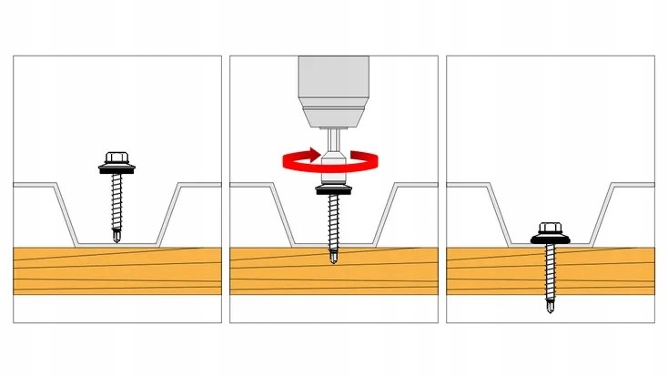 Уплотняющая подушка от EPDM защищает винт от коррозии и предотвращает утечки, гарантируя постоянное уплотнение и сопротивление с переменными погодными условиями.