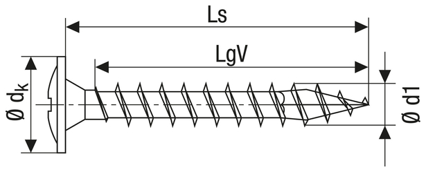 Общая длина Ls 30 мм, полная резьба LgV 27 мм, головка Z2, количество в упаковке 1000