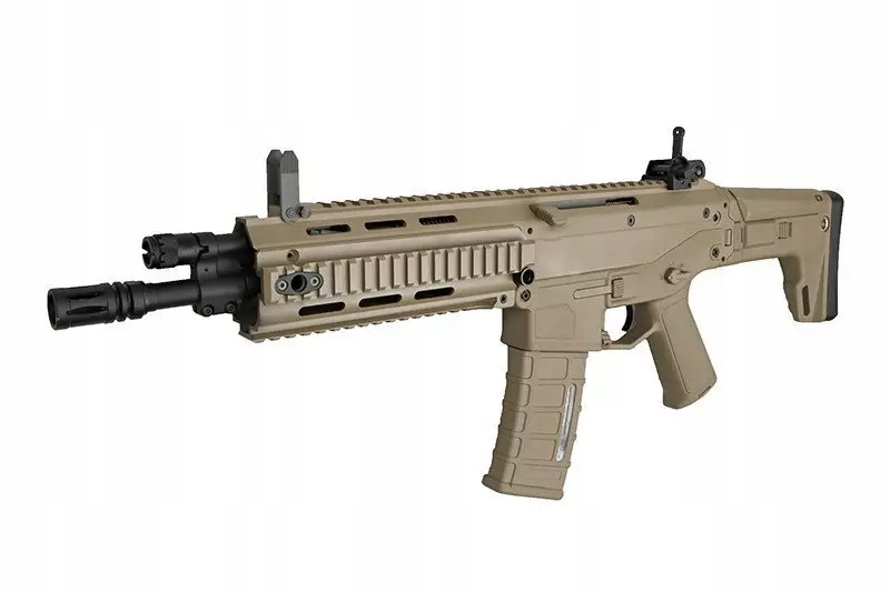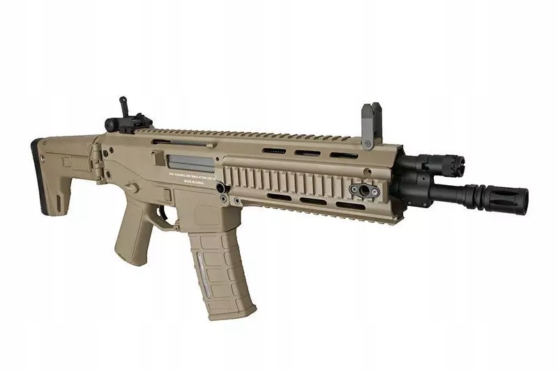Нижняя часть Корпус реплики с пистолетной рукояткой, складным прикладом и магазином ПМАГ изготовлены из прочного полимера. Металл (однородный сплав цинка и алюминия) использовался для изготовления верхней части корпуса, внешнего ствола и механических прицельных приспособлений (откидного типа). Цевье с набором RIS-направляющих изготовлено из алюминия с использованием технологии ЧПУ.