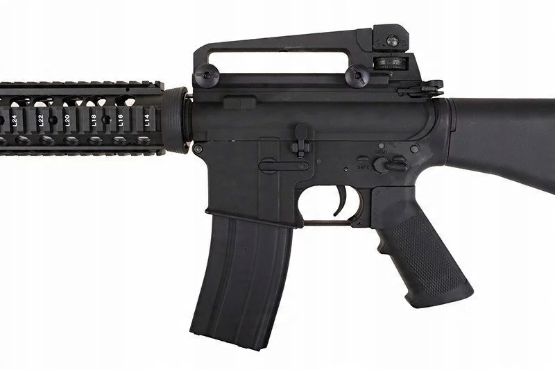 Реплика была сделана из металла и пластика. Использование металлической коробки передач в реплике обеспечивает гораздо более длительную работу, чем в случае его аналогов, изготовленных из пластика. Благодаря металлической коробке передач, вы можете использовать многочисленные изменения, чтобы улучшить рабочую культуру, а также реплику, которая улучшает мощность. На задней части реплики существует не стригленная транспортная ручка, которая облегчает перемещение оборудования. Вместо рукоятки вы можете легко установить коллиматор или телескоп. Фронт полного RIS позволяет установить широкий спектр дополнительных аксессуаров, которые улучшат коммунальные и эстетические значения.