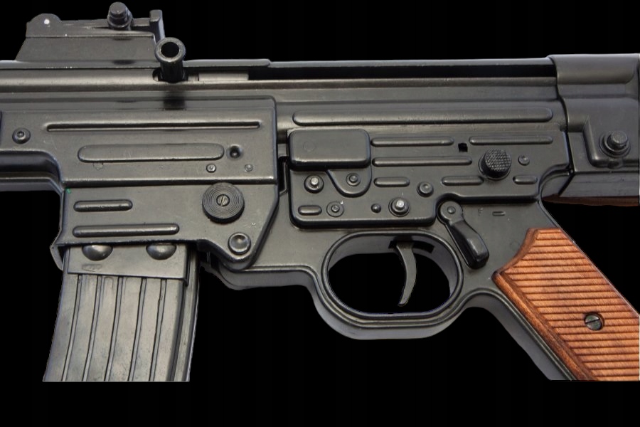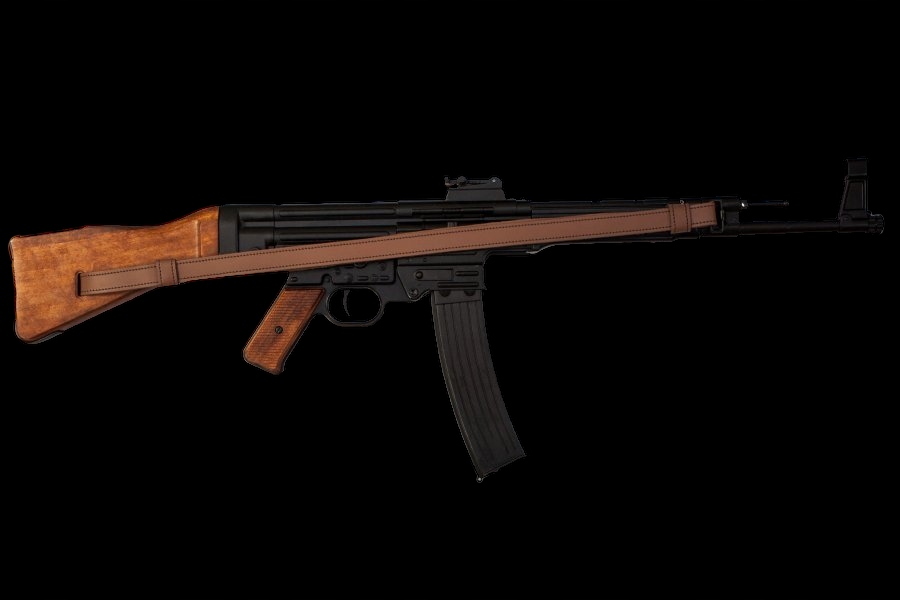 Представленная реплика — немецкая автоматическая винтовка Sturmgewehr 44 (StG 44), разработанная в 1943 году. Всего к концу 1944 года было произведено 425 000 штук. копии. После окончания Второй мировой войны его использовало польское антикоммунистическое подполье и полиция ГДР.