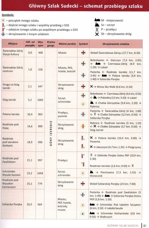 Путеводитель представляет маршрут с запада на восток, от Сверадува-Здруя до Прудника, в связи с тем, что это наиболее часто выбираемое направление марша. Однако на картах показан пробег и в обратном направлении. Весь маршрут разделен на 23 участка, причем такое деление вытекает лишь из конкретных возможностей представления отдельных фрагментов маршрута на принятом листе карты и не должно рассматриваться как предложение разбить его на этапы.