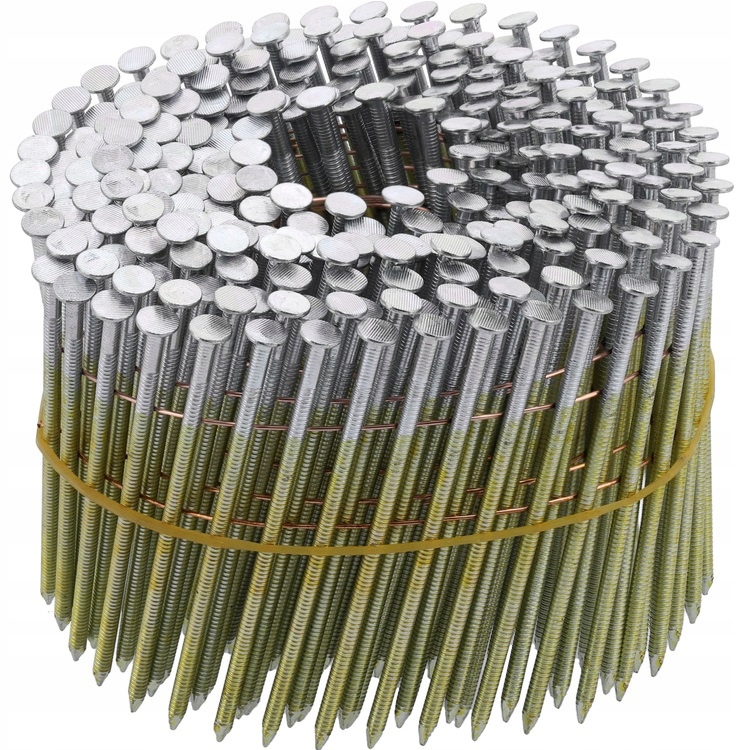 Гвозди барабанные оцинкованные, соединенные с проволокой под углом 15° - 16°. Чаще всего используются в кровле для соединения деревянных элементов, особенно там, где гвоздь может подвергаться воздействию погодных условий. Гальванизация снижает риск появления ржавчины. Барабанные гвозди используются с барабанным гвоздезабивателем.