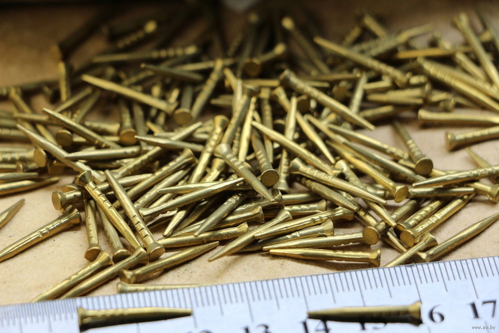 Gwoździe mosiężne ZSRR. cena za 200 gr. w 200 gr ponad 400 szt. gwoździ.