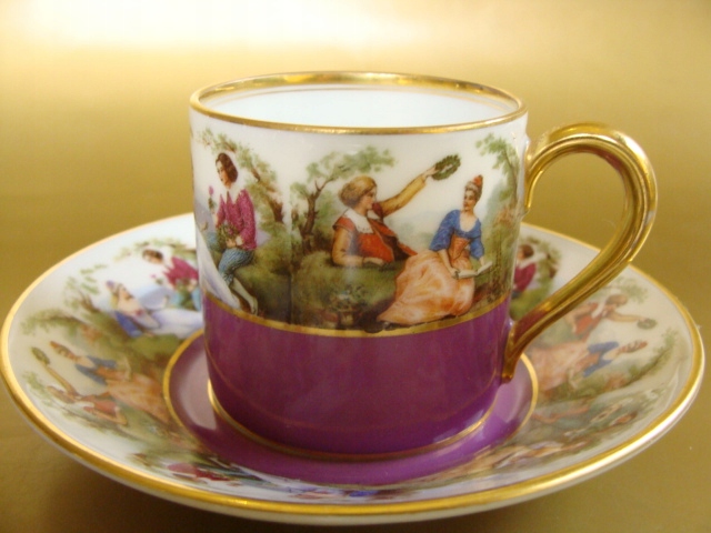 , много сцен на тарелке, вся ручка позолоченная