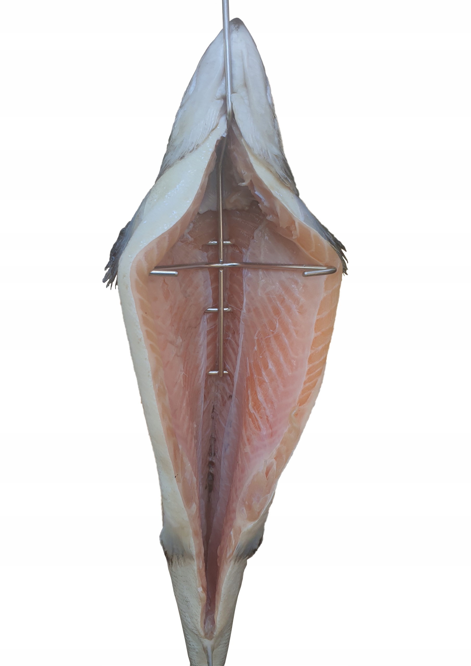 Высококачественные крючки для копчения крупной рыбы целиком или по частям, с тремя двойными лопастями и большим регулируемым распорником. p>