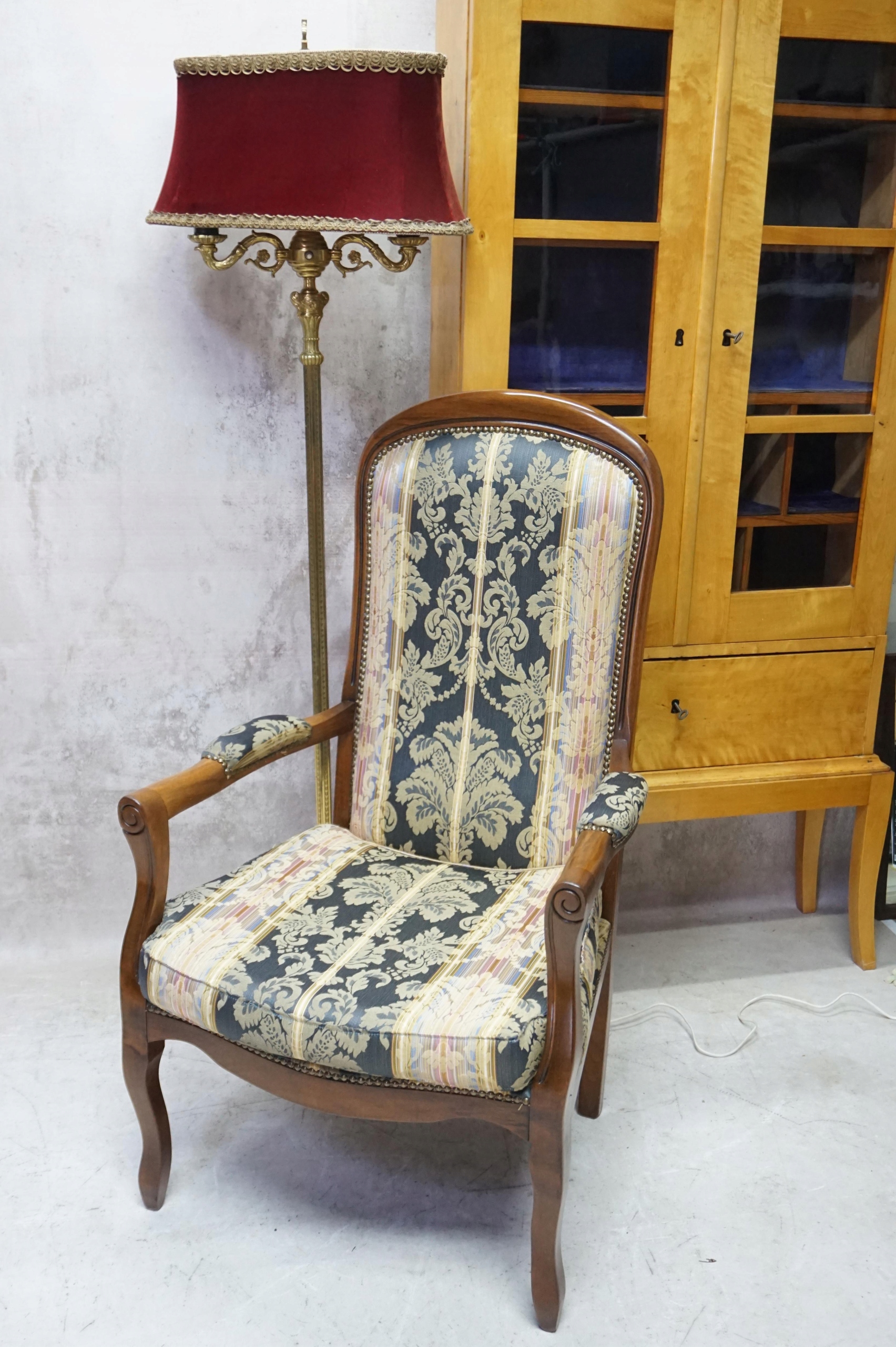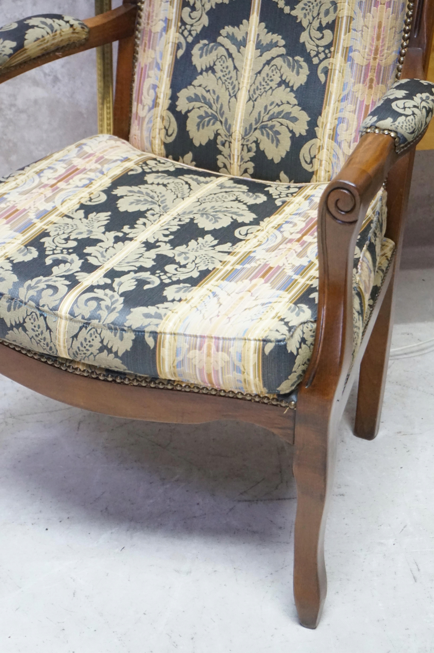 кресло на аккуратных, согнутых ногах. Высокая спинка