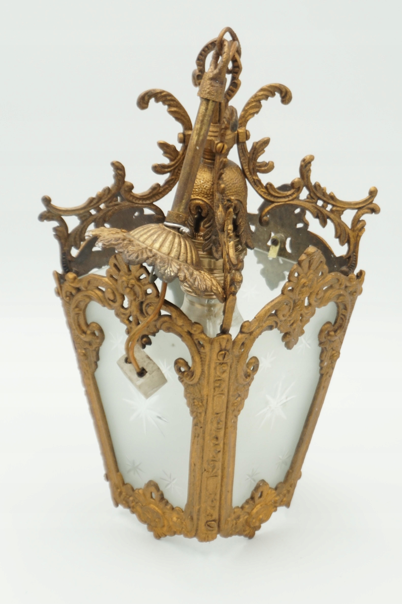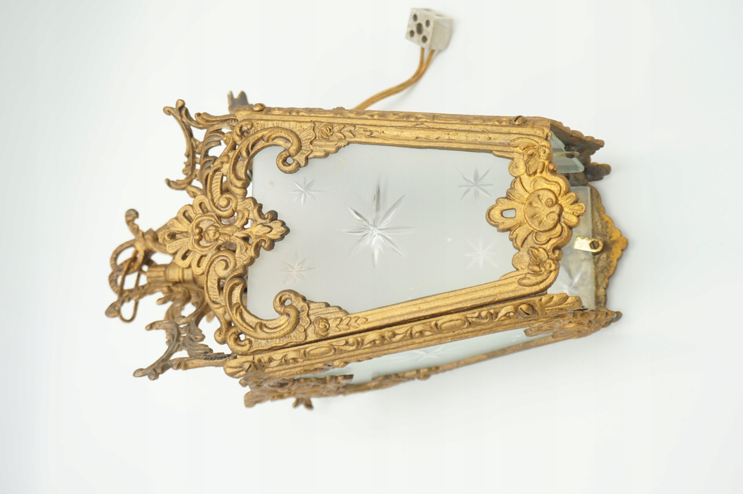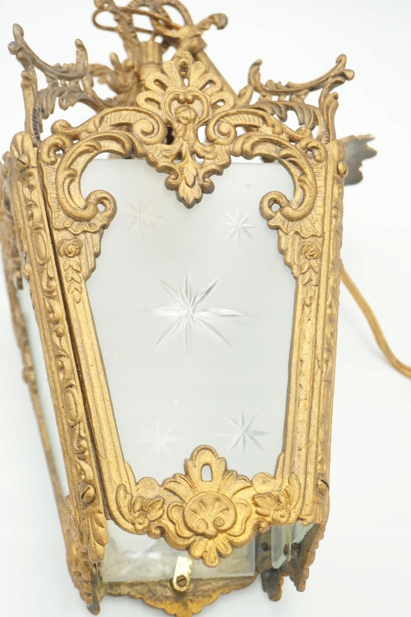 Изделие выполнено из блестящей латуни с декоративными мотивами.