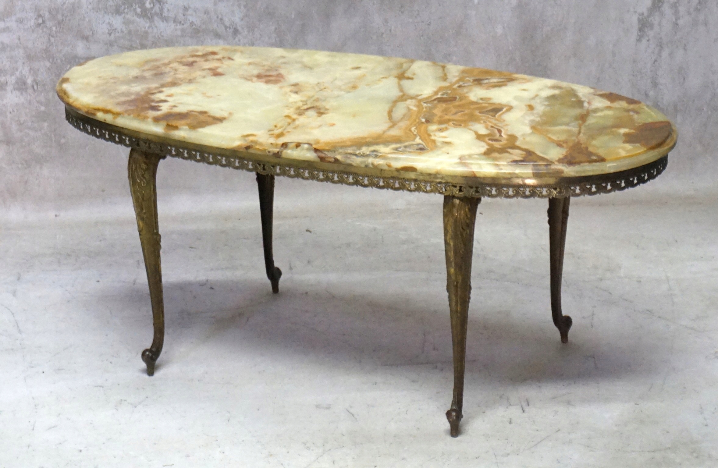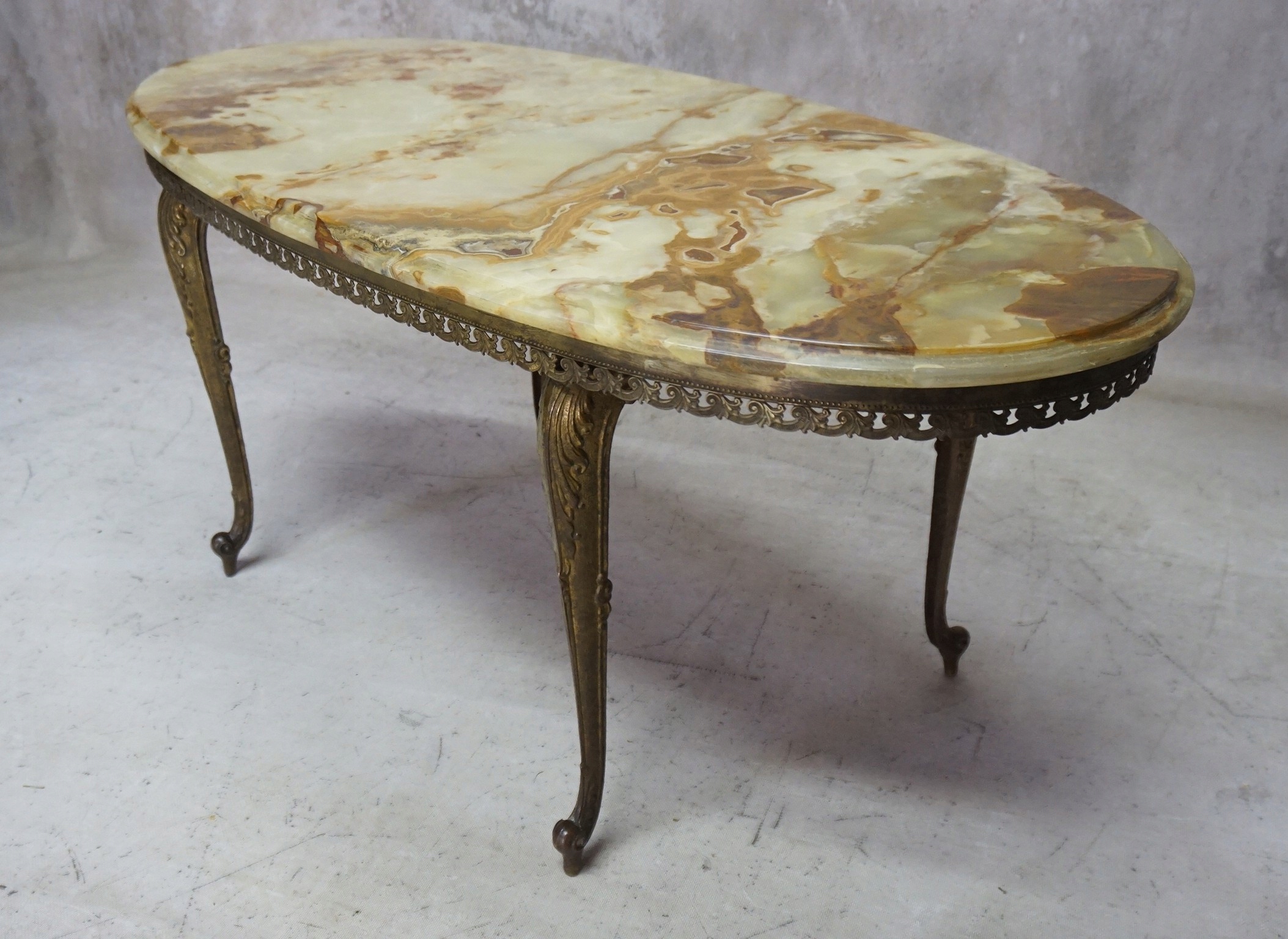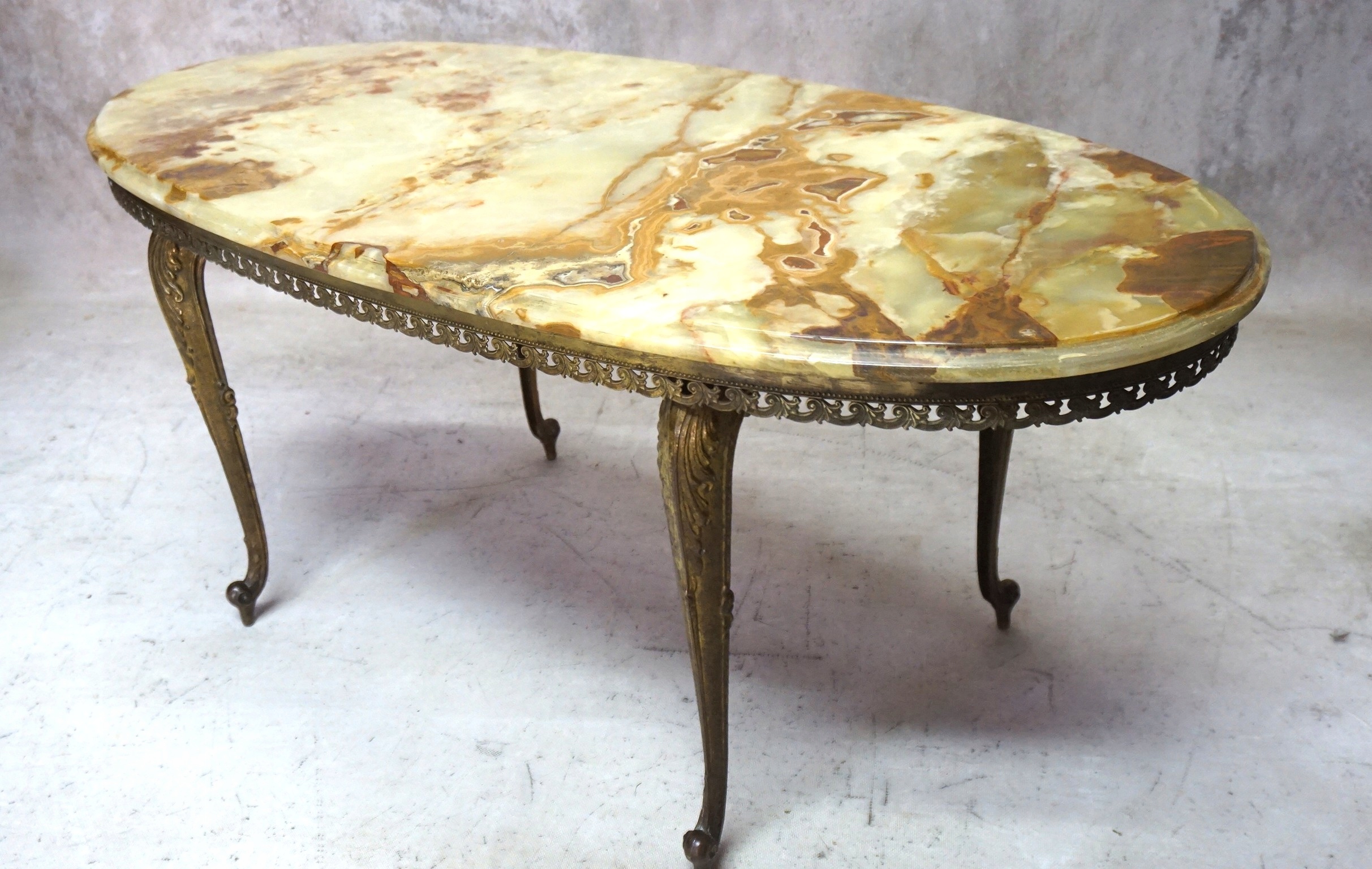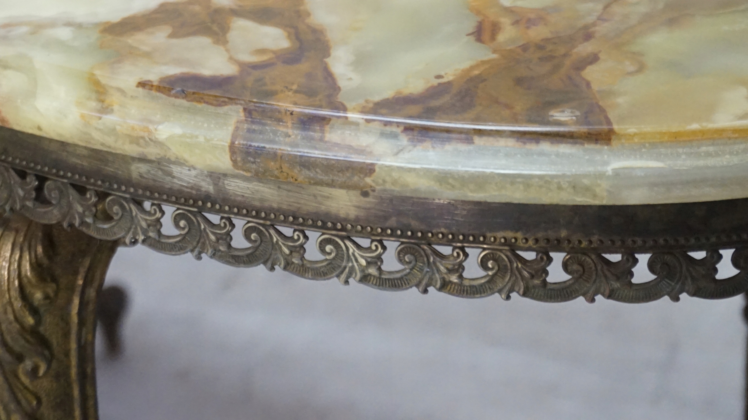 Красивая, чрезвычайно элегантная латунная скамейка. столешница.