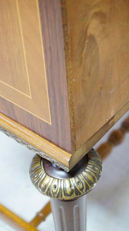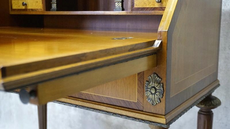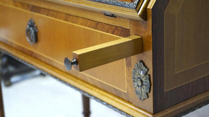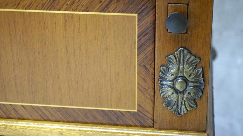 Мебель, украшенная красивыми и деликатными латунными элементами.