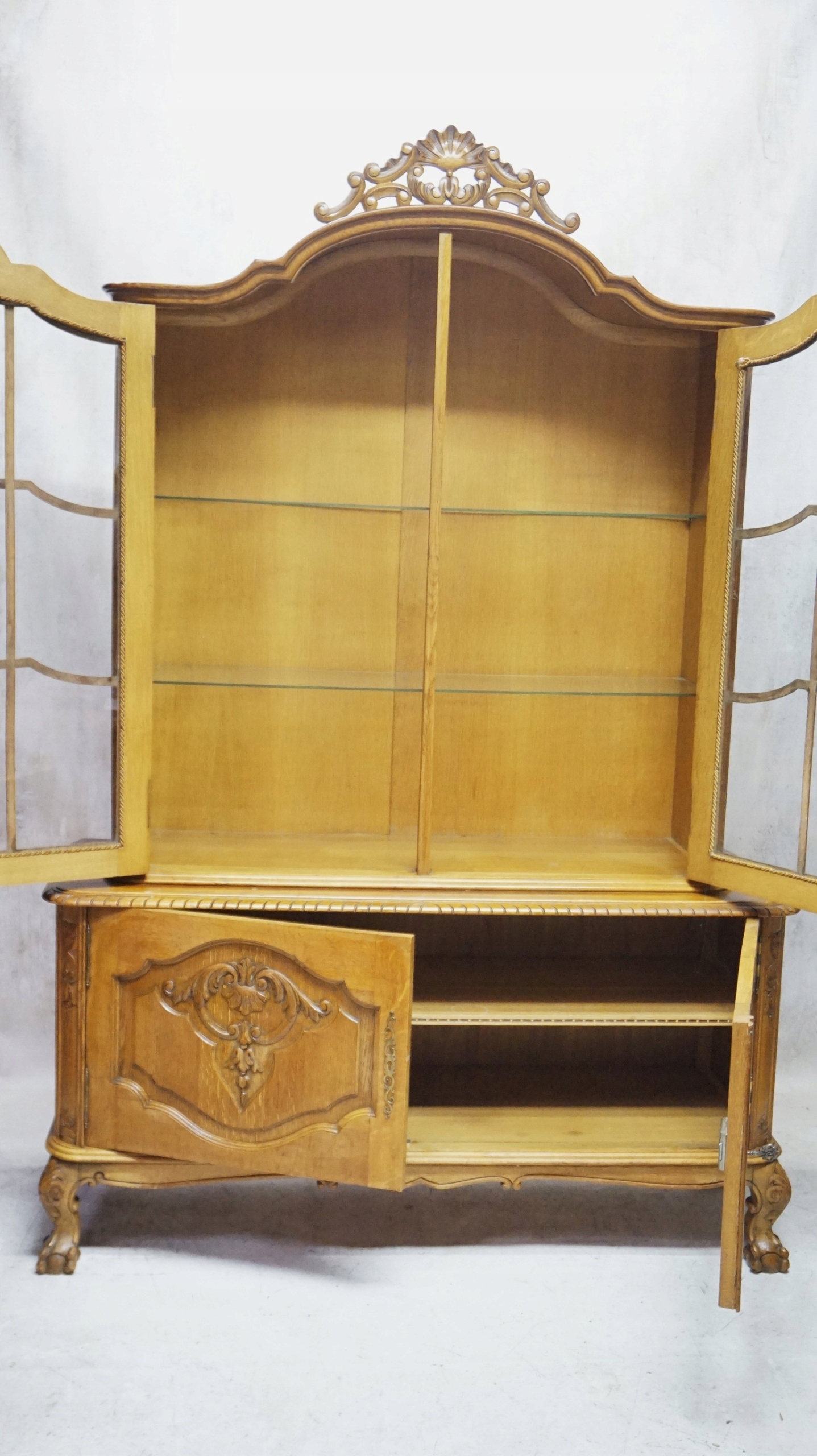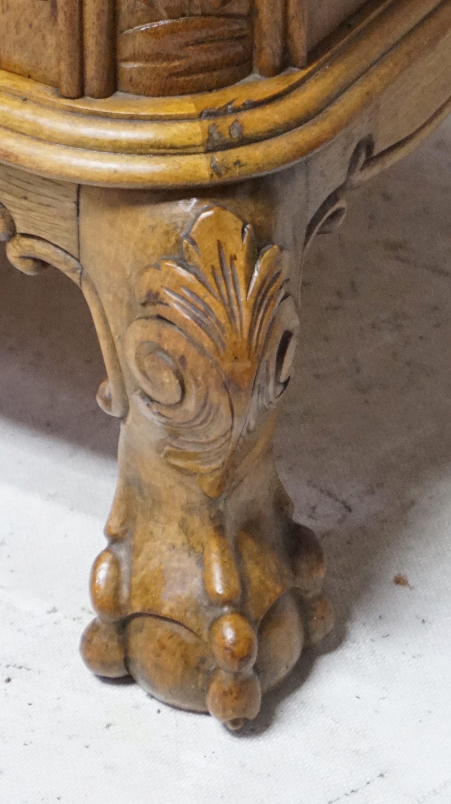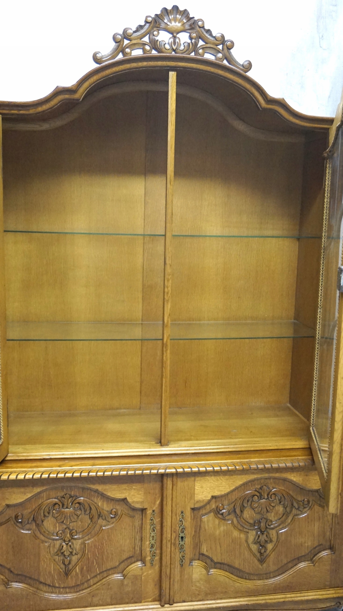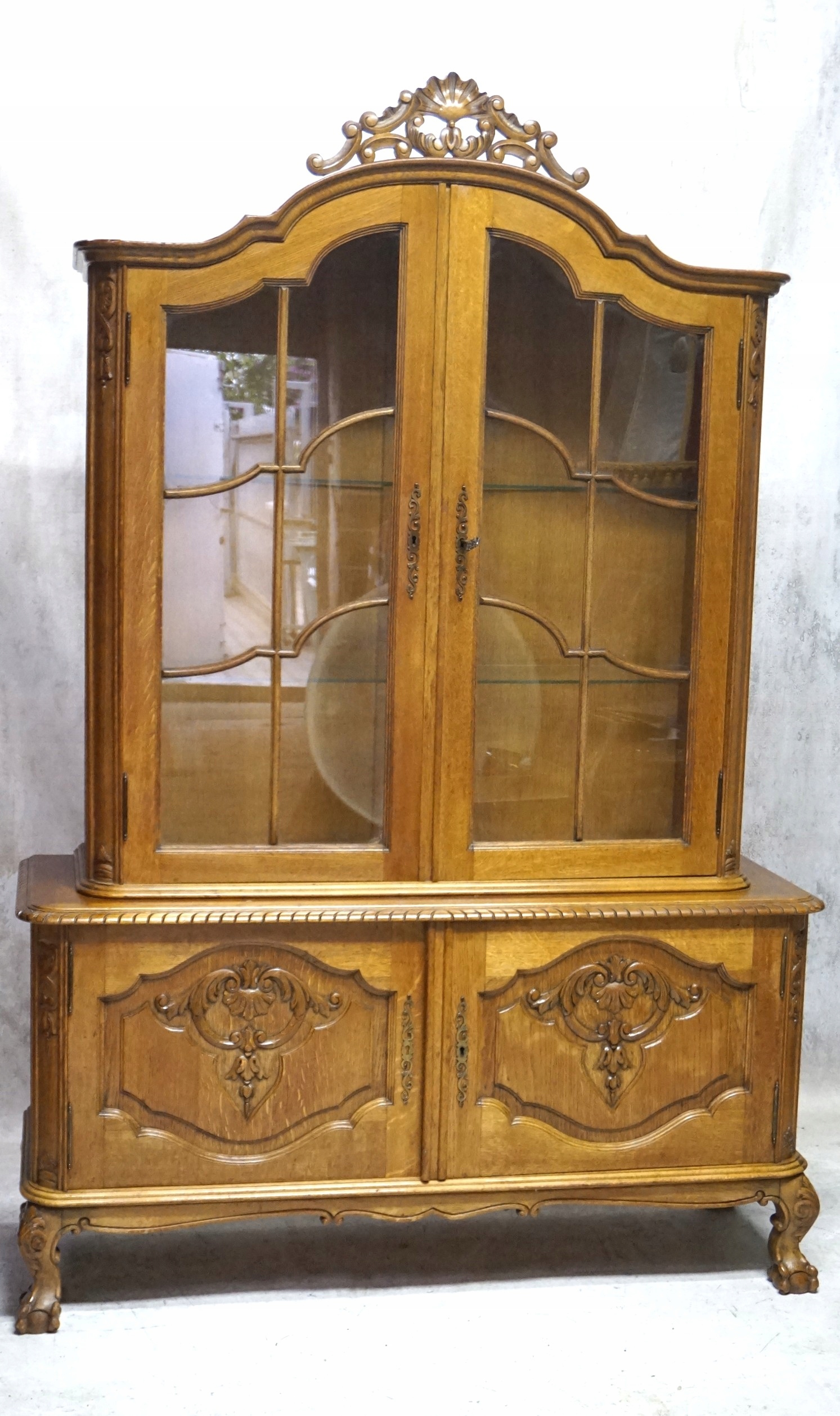 Мебель в цвете среднего дуба с красивыми резными украшениями.