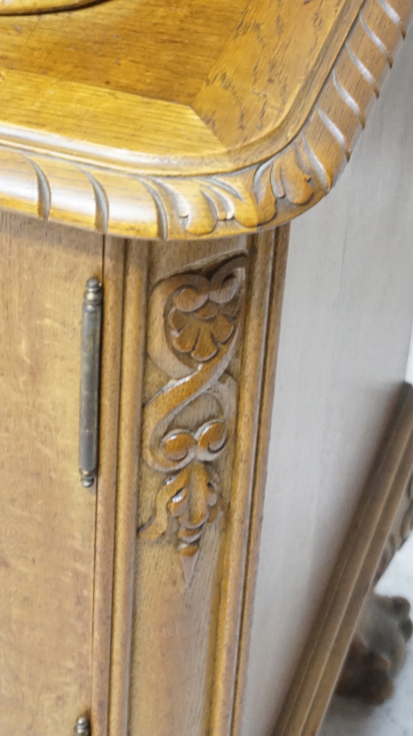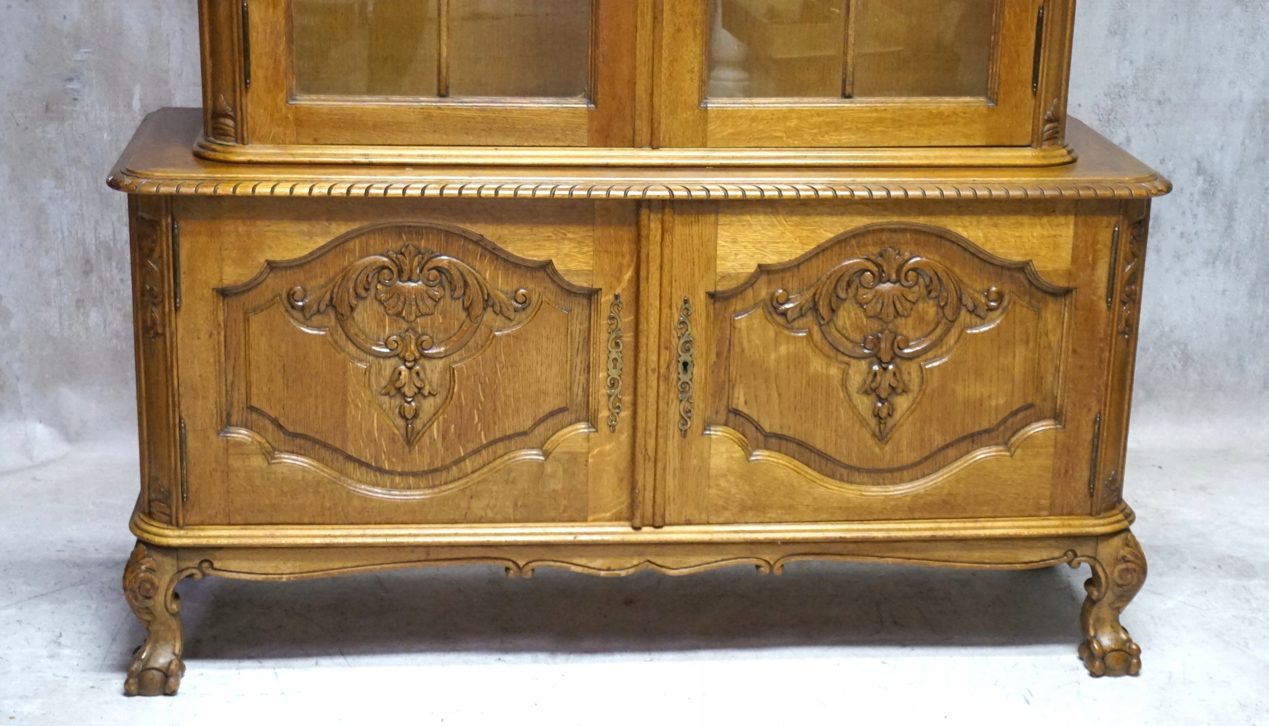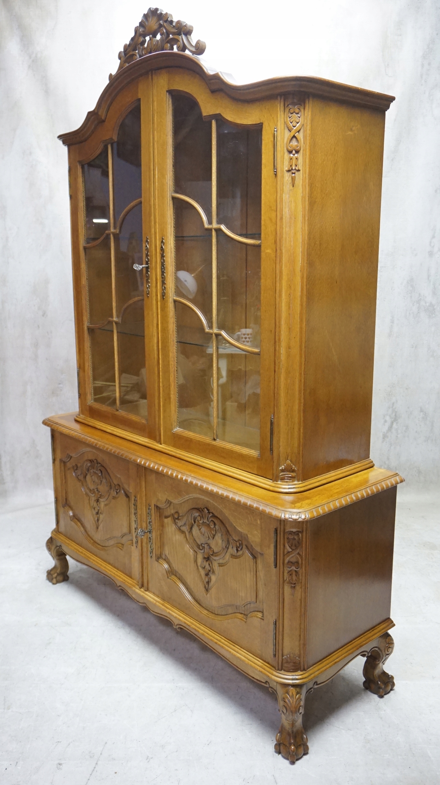 Мебель в цвете среднего дуба с красивыми резными украшениями.