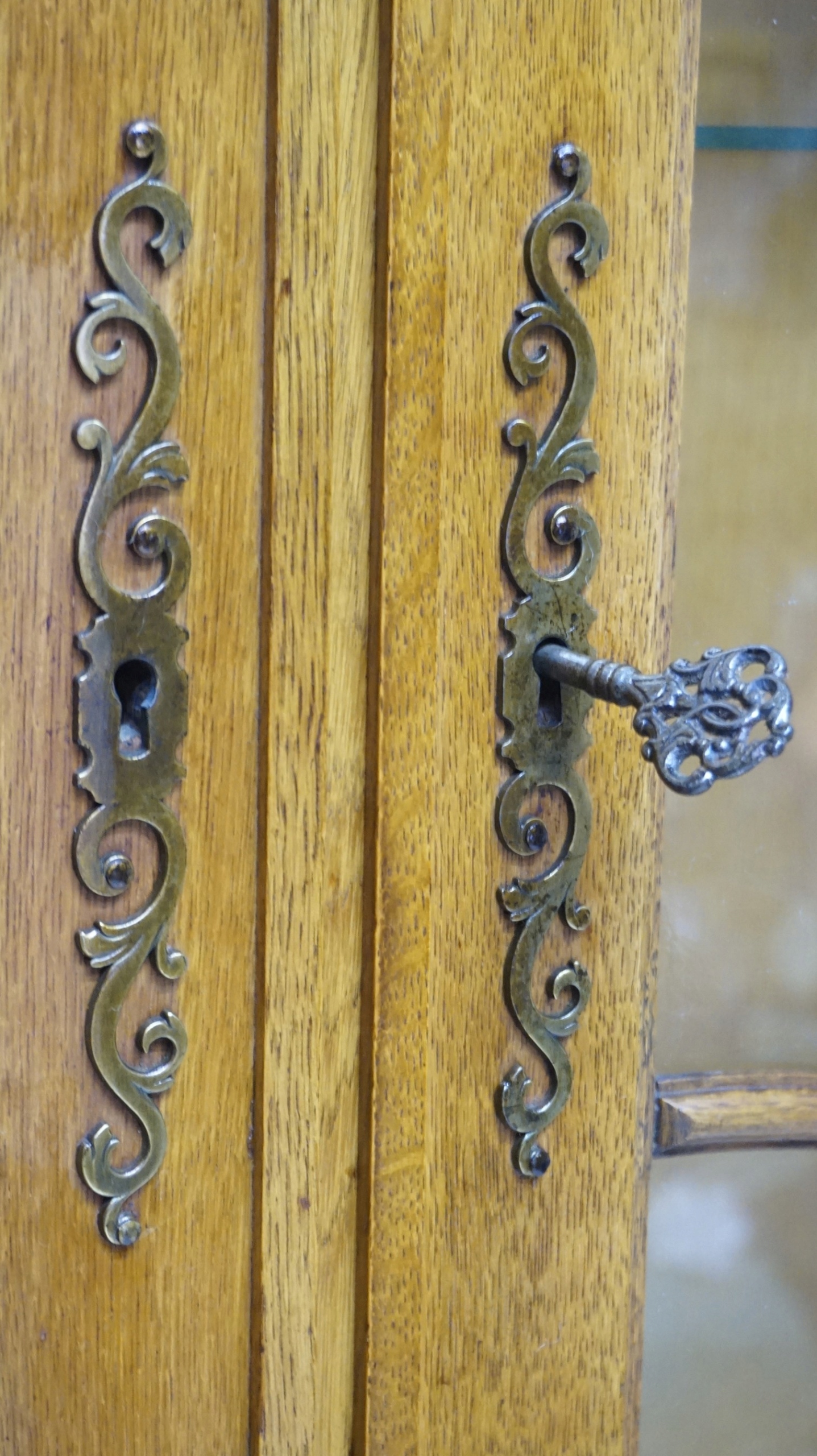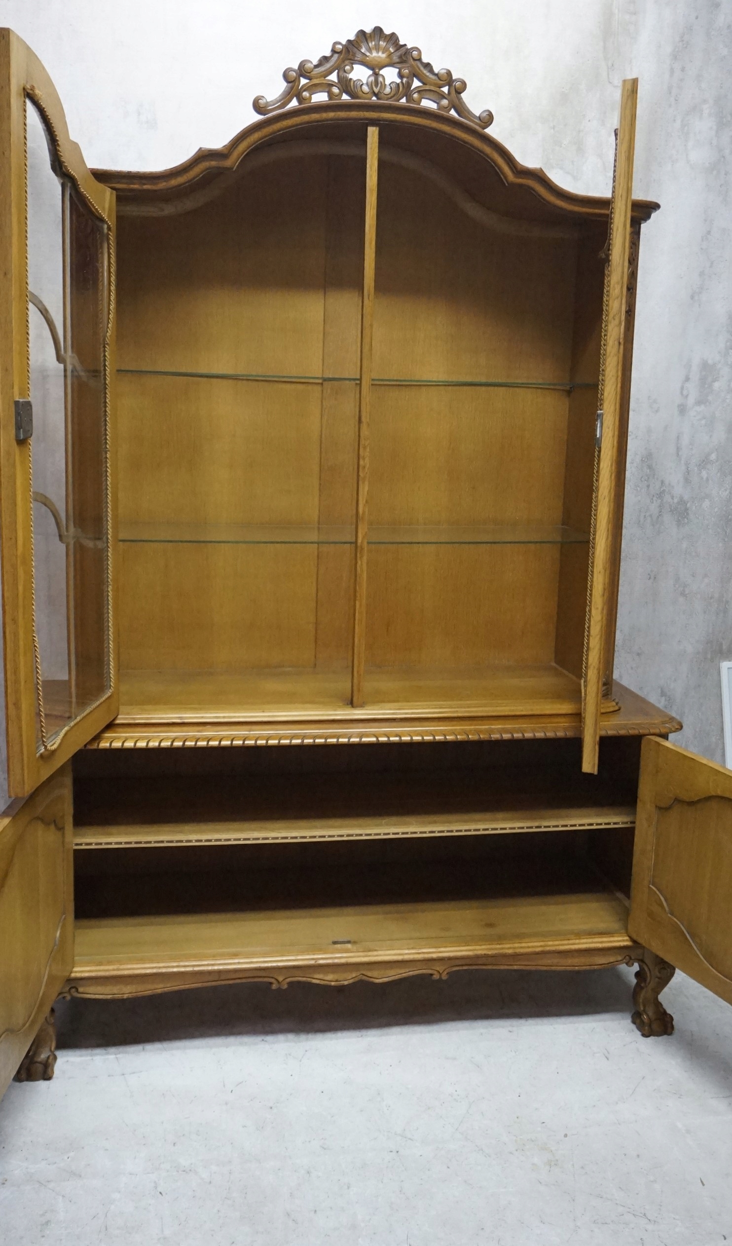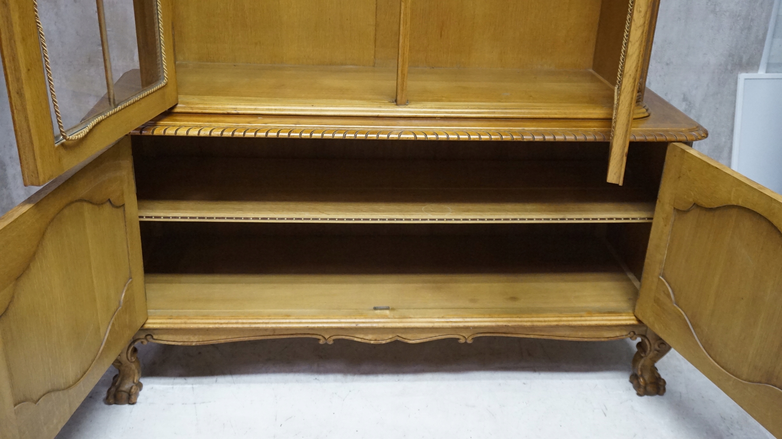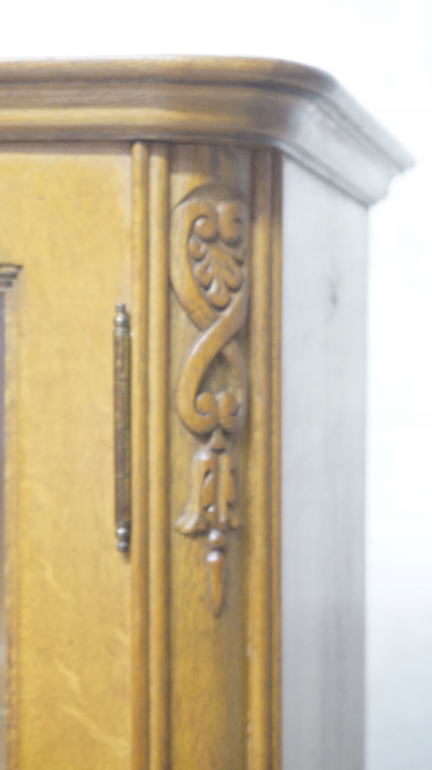 Мебель в цвете среднего дуба с красивыми резными украшениями.