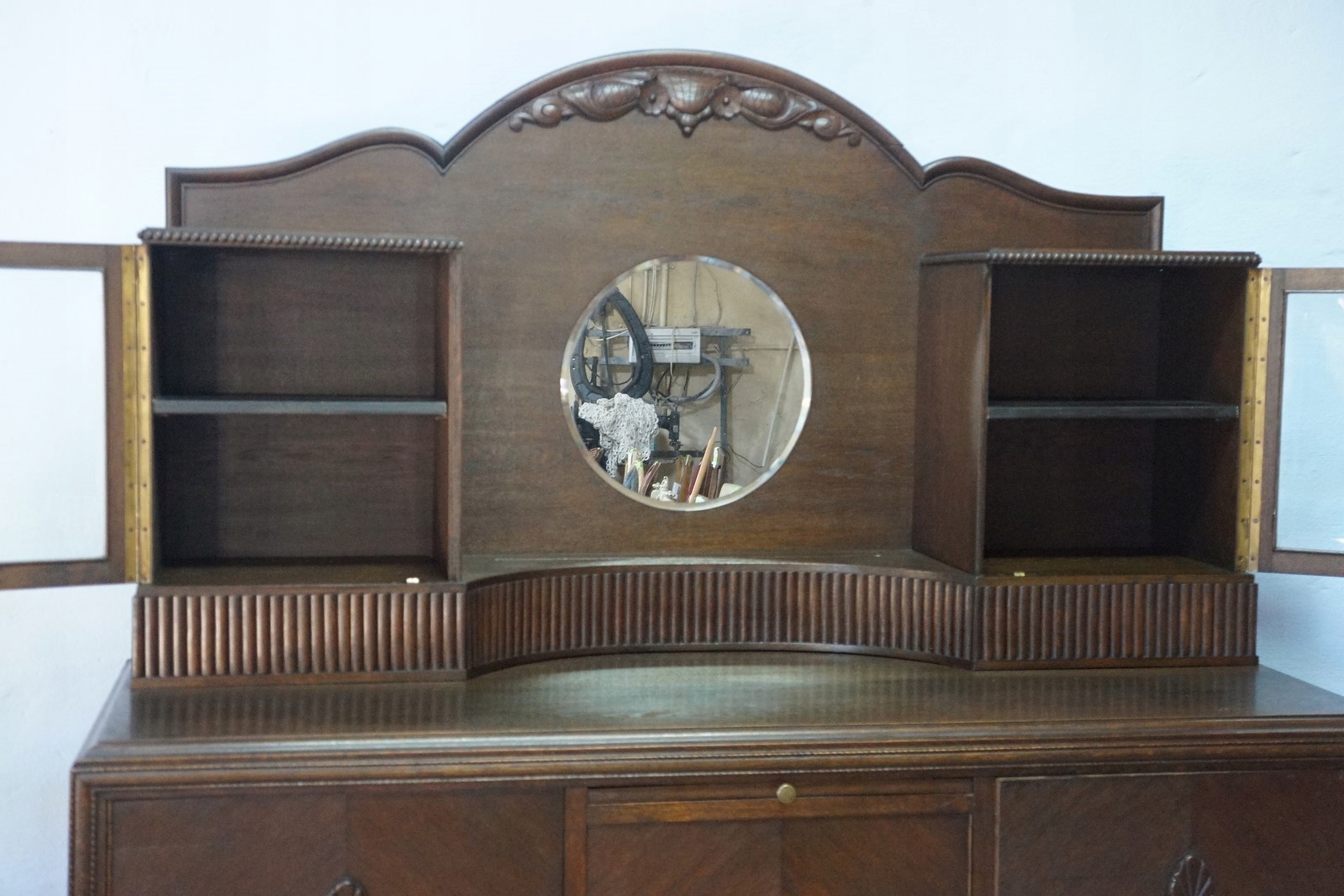 Пристройка с круглым хрустальным зеркалом и двумя витринами -