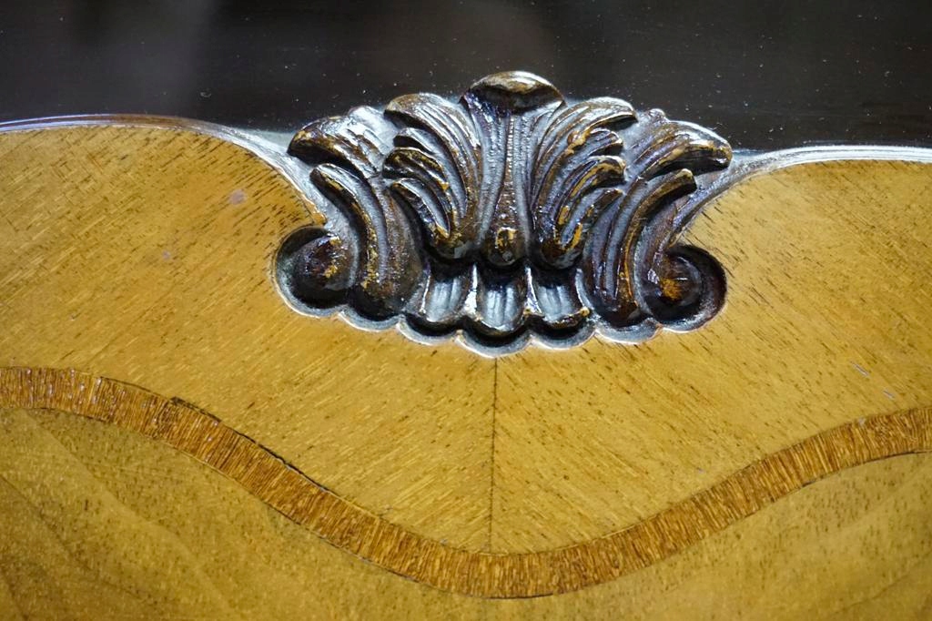 Мебель из ясеня и ореха, среднего цвета, полированная.