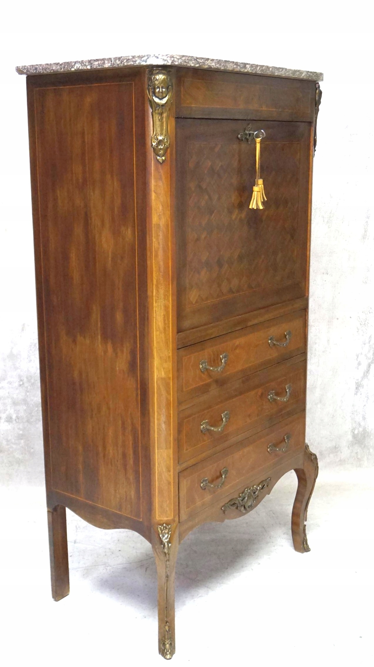 Средний шкаф из грецкого ореха среднего цвета Декоративные латунные украшения