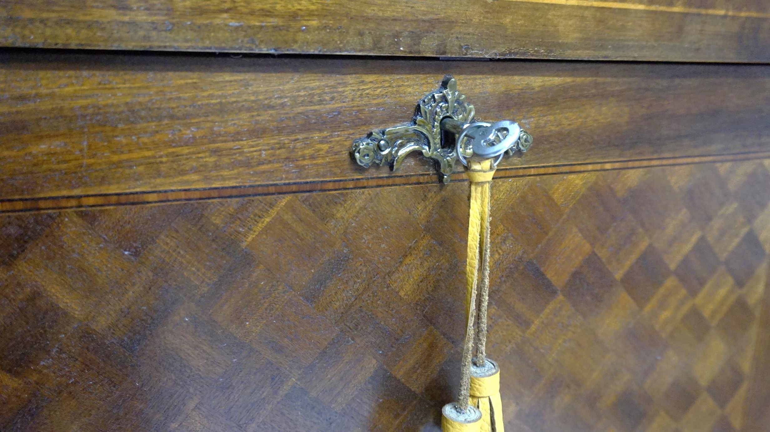 H-P уникальный ореховой сундук с мрамором и латуни