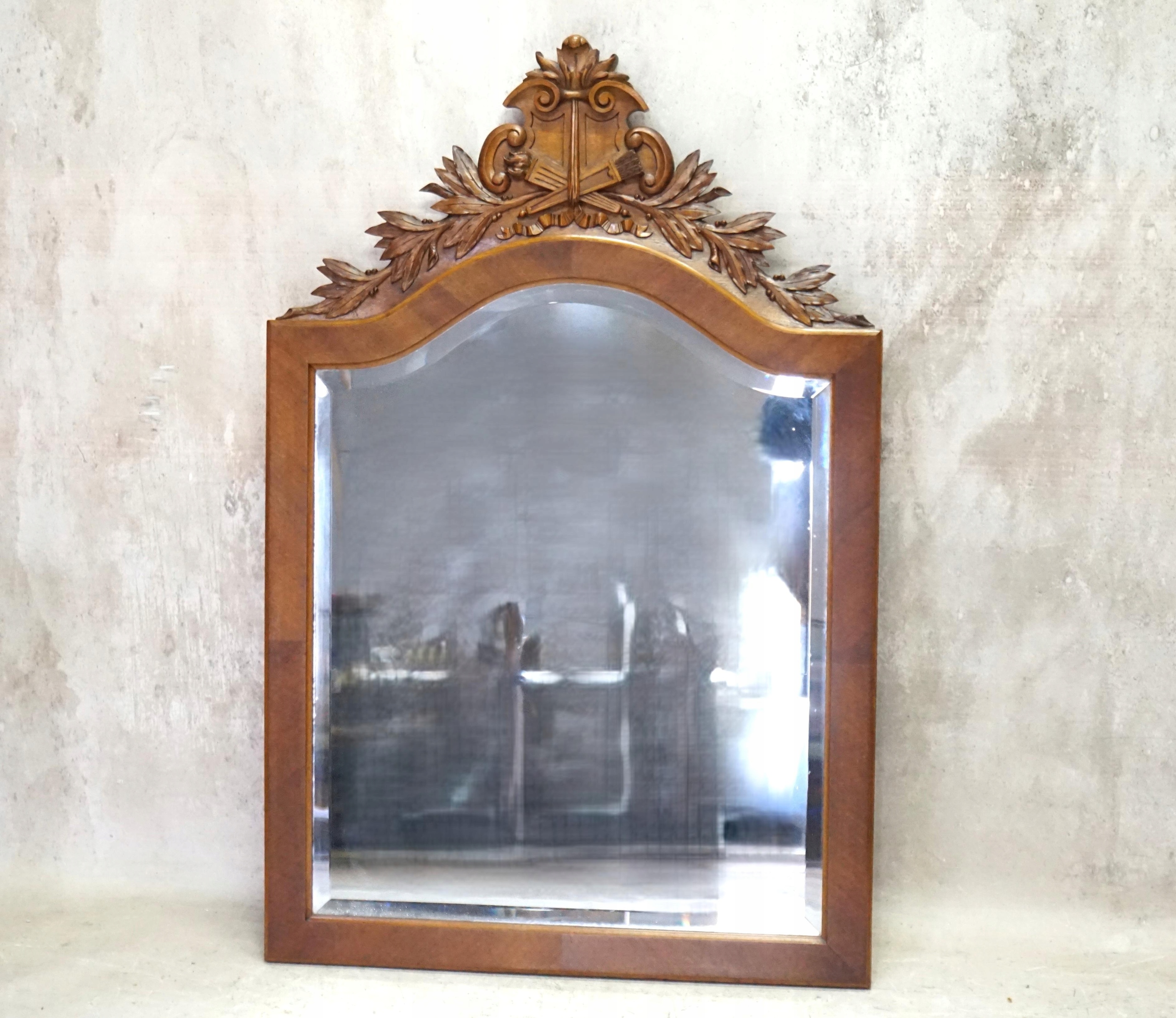 H-P Большое кристаллическое зеркало в деревянной раме с резьбой