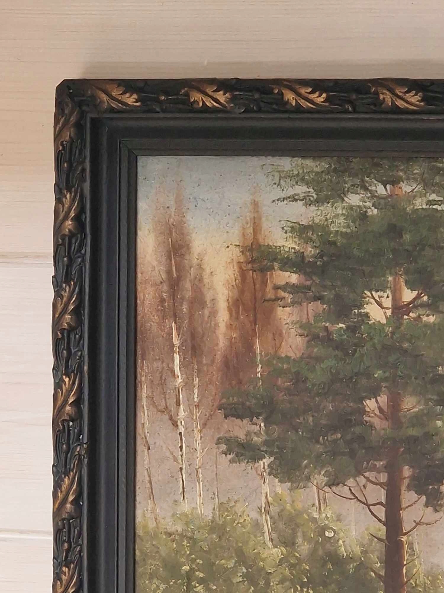 Красивая рама из дерева, окрашенная в черный цвет с отделкой в цвете старого золота